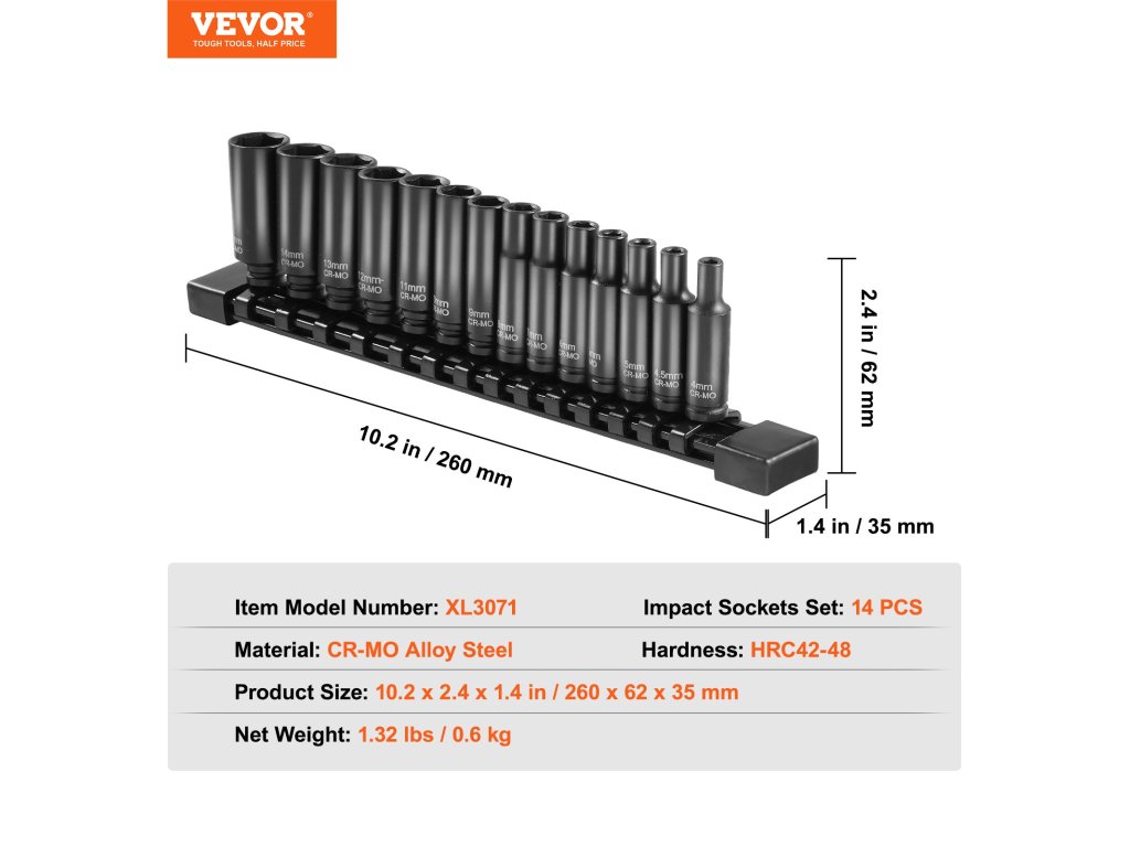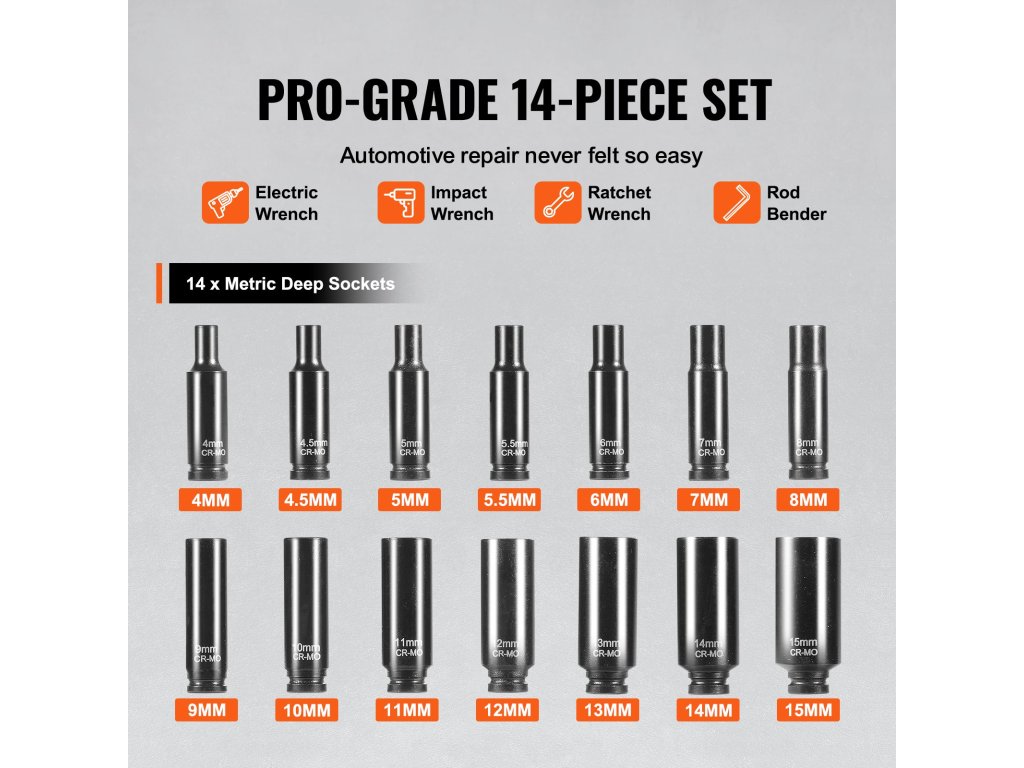 Professzionális és hordozható ütvecsavaros dugókulcs-készletet keres? a VEVOR 14 darabos ütvecsavaros dugókulcs-készlet teljes körű szerszámkészletet kínál, amely különösen alkalmas a különböző márkájú autók javításához.