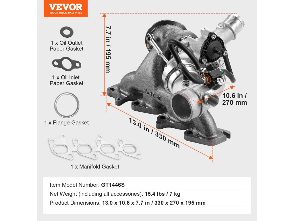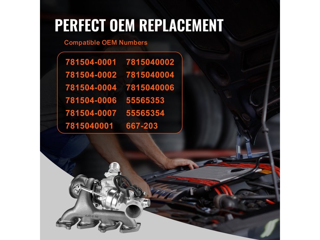 Ez a turbófeltöltő garantálja az eredeti alkatrészekkel való tökéletes kompatibilitást és beszerelést, és nem igényel semmilyen módosítást. Megjegyzés: Használat előtt kenje be olajjal a turbófeltöltőt és a tömítéseket. A szakszerű beszerelés erősen ajánlott.