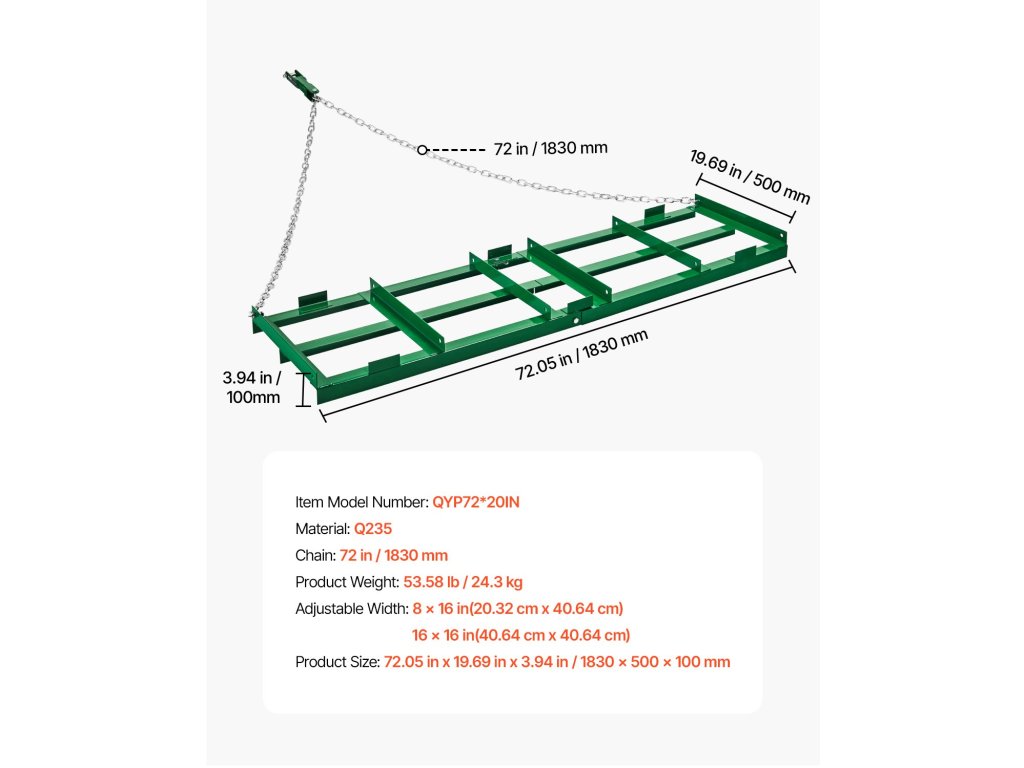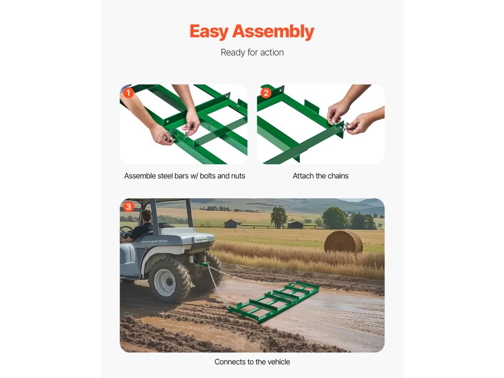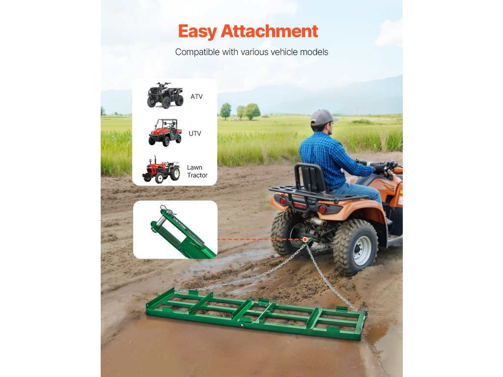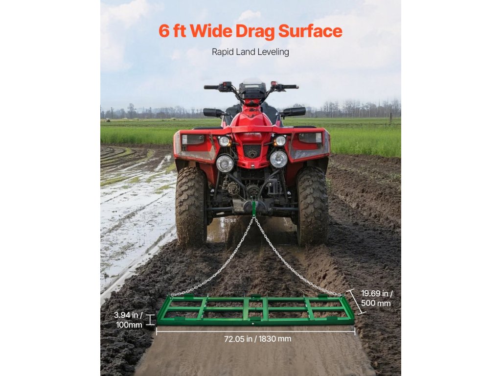 1,8 m-es vontatott borona, állítható lécekkel, 183 cm-es lánccal a traktorhoz