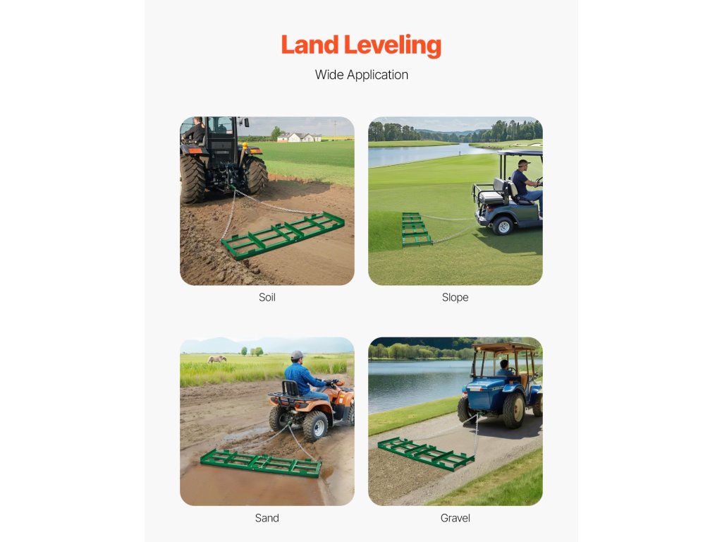 A Q235-ös, nagyszilárdságú acélból készült vontatókapu könnyen alkalmazkodik a durva terephez és a sziklás felületekhez. A korrózióálló kivitel hosszú élettartamot biztosít a változó időjárási körülmények között is, így bármilyen környezetben hatékonyan végzi a földgazdálkodási feladatokat.
