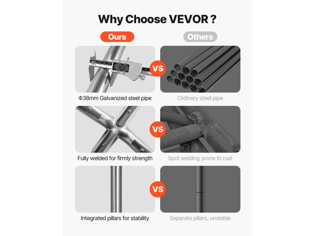 A garázs kerete horganyzott acélcsövekből készült, és a stabilitás növelése érdekében teljesen hegesztett. A szerkezet nagyobb szélállósággal és teherbírással büszkélkedhet. A megvastagított alap, valamint a szélkábelek és a talajszegek szilárd tartást biztosítanak.