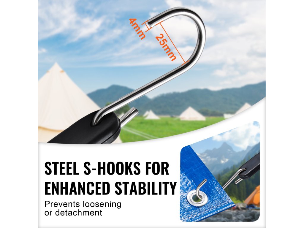 A biztonságos szállításhoz és tároláshoz tervezett, nagy szilárdságú horgok ezeken a bungee-zsinórkészleteken ellenállnak a deformációnak és a törésnek, és további biztonságot nyújtanak azáltal, hogy megvédik a tárgyakat az ütésektől és a rázkódástól.