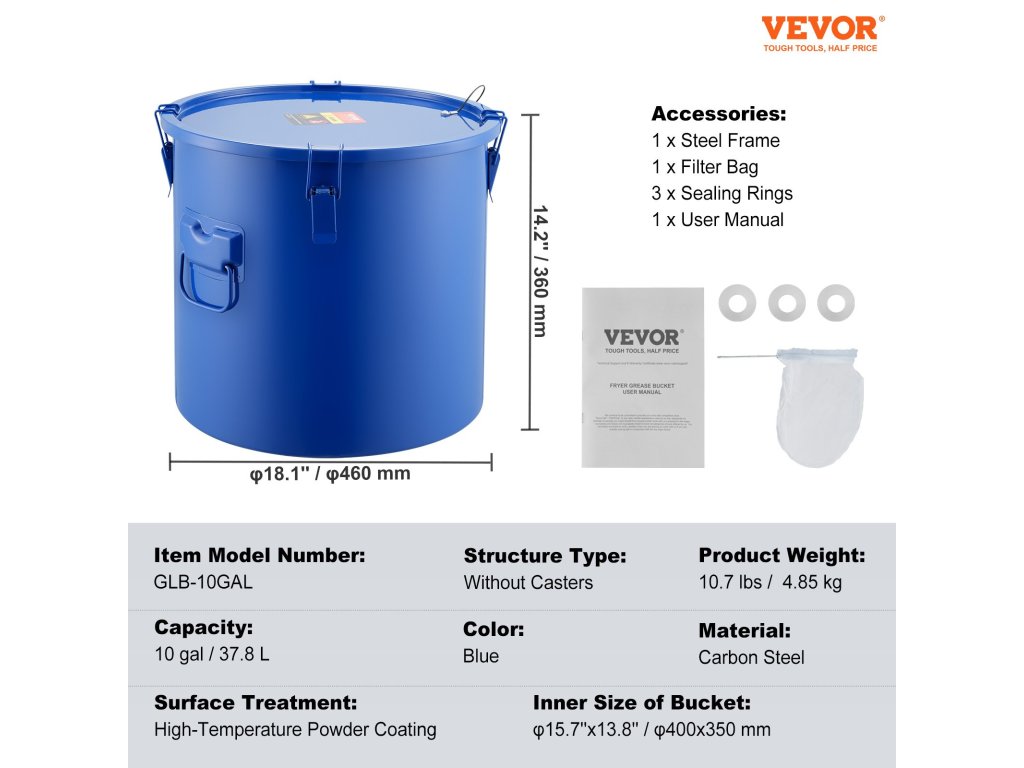 VEVOR fritőz zsíros vödör - könnyű sütőolaj gyűjtés