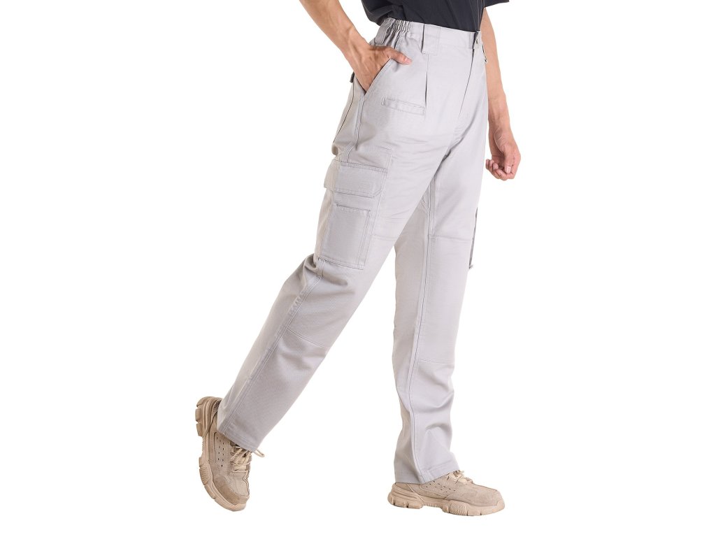 A férfiaknak készült lángmentes nadrág dupla derékszíjjal rendelkezik, rugalmas derékszíjjal és övhurokkal a különböző testalkatú és derékméretekhez igazodva. Az illeszkedés a rugalmas derékpánttal önmagában vagy az övhurokkal együtt állítható be a nagyobb rugalmasság érdekében.