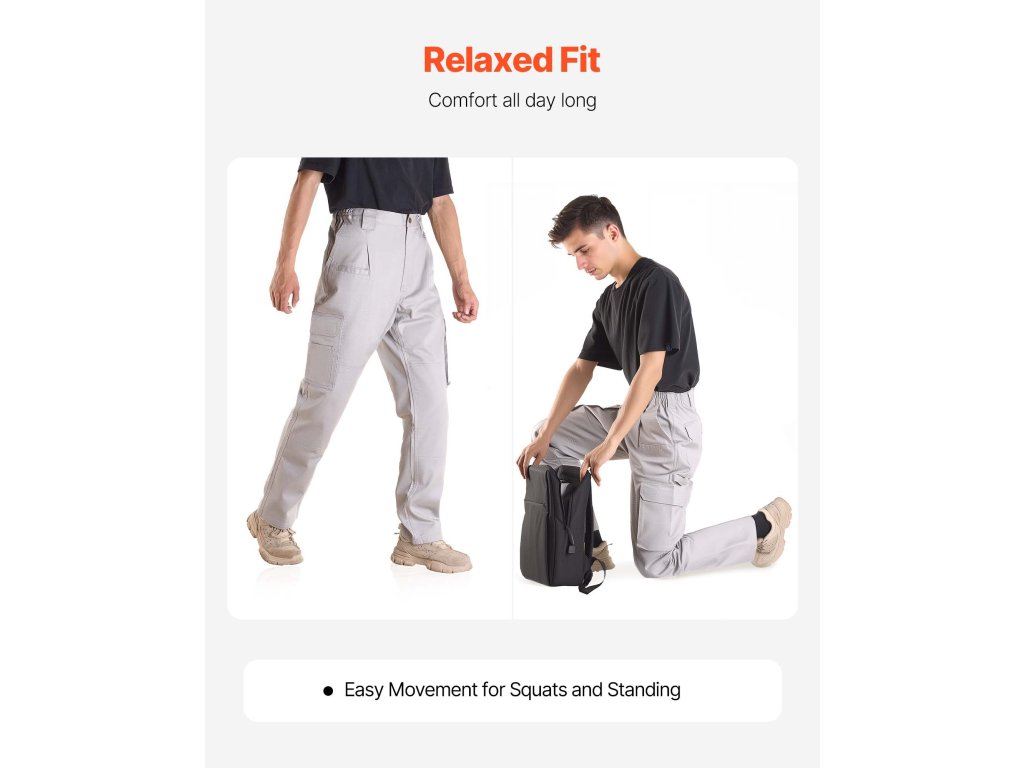 A férfiaknak készült lángmentes nadrág dupla derékszíjjal rendelkezik, rugalmas derékszíjjal és övhurokkal a különböző testalkatú és derékméretekhez igazodva. Az illeszkedés a rugalmas derékpánttal önmagában vagy az övhurokkal együtt állítható be a nagyobb rugalmasság érdekében.