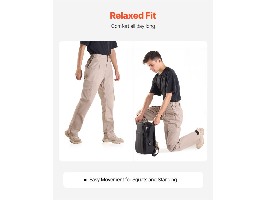 100% pamutból készült, tűzálló cargo nadrág, L, khaki, több zsebbel