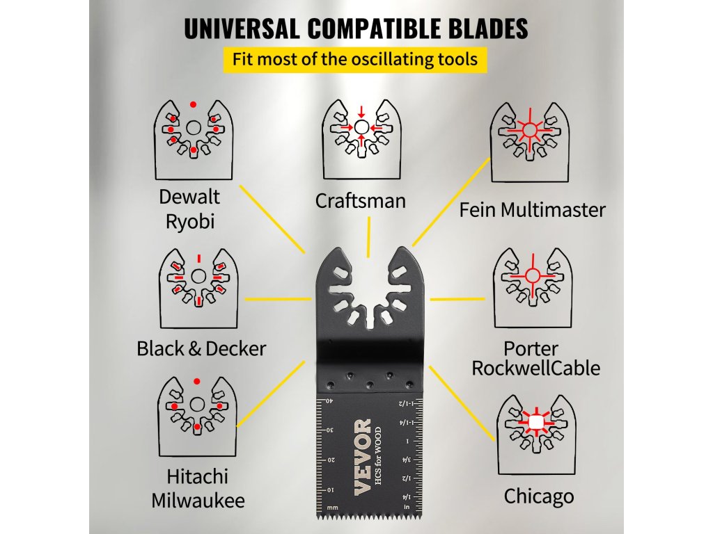 Az univerzális pengéket úgy tervezték, hogy kompatibilisek legyenek a Fein Multimaster, Porter Rockwell Cable, Ryobi, Milwaukee, Hitachi, Black & Decker, Chicago, Craftsman és Dewalt berendezésekkel.