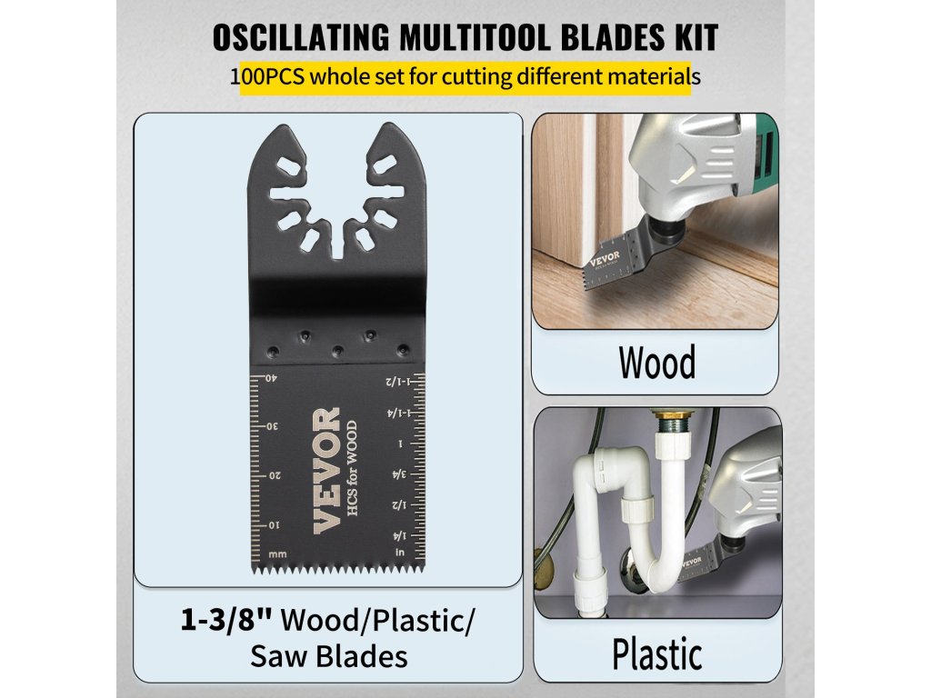 a 100 db oszcilláló fűrészlapok készlete 1-3/8" szabványos fűrészlapok nagy kényelmet nyújthatnak a cseréhez.