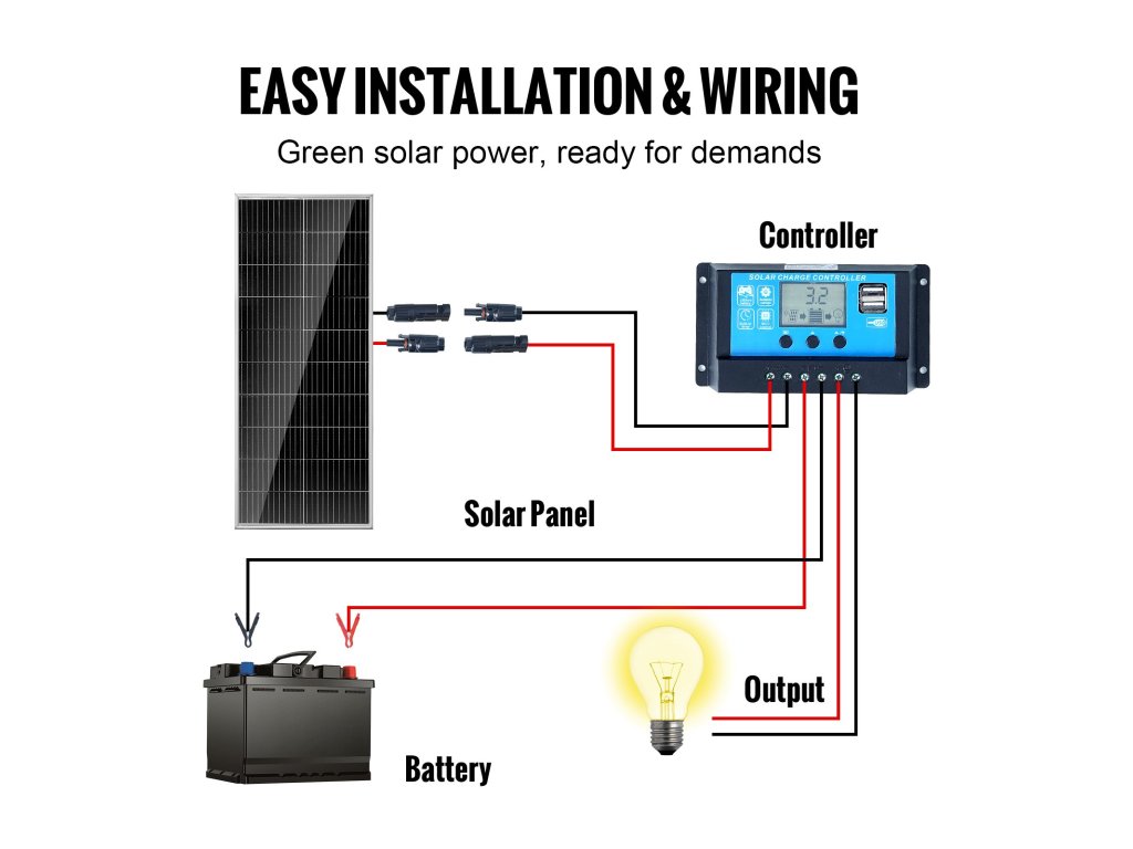 100 W-os monokristályos napelem szett 12 V-os vezérlővel, IP68-as védelmű