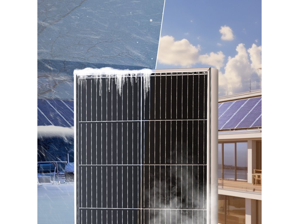 Monokristályos PV-modulunk, amely alacsony vastartalmú edzett üvegből és korrózióálló alumíniumkeretből készül, tartósan működik. Az IP68-as szabványnak megfelelően vízálló, és ellenáll a -10 ℃ és 65 ℃ közötti hőmérsékletnek és a nagy szélnyomásnak, így még zord időjárási körülmények között is stabil áramellátást biztosít.