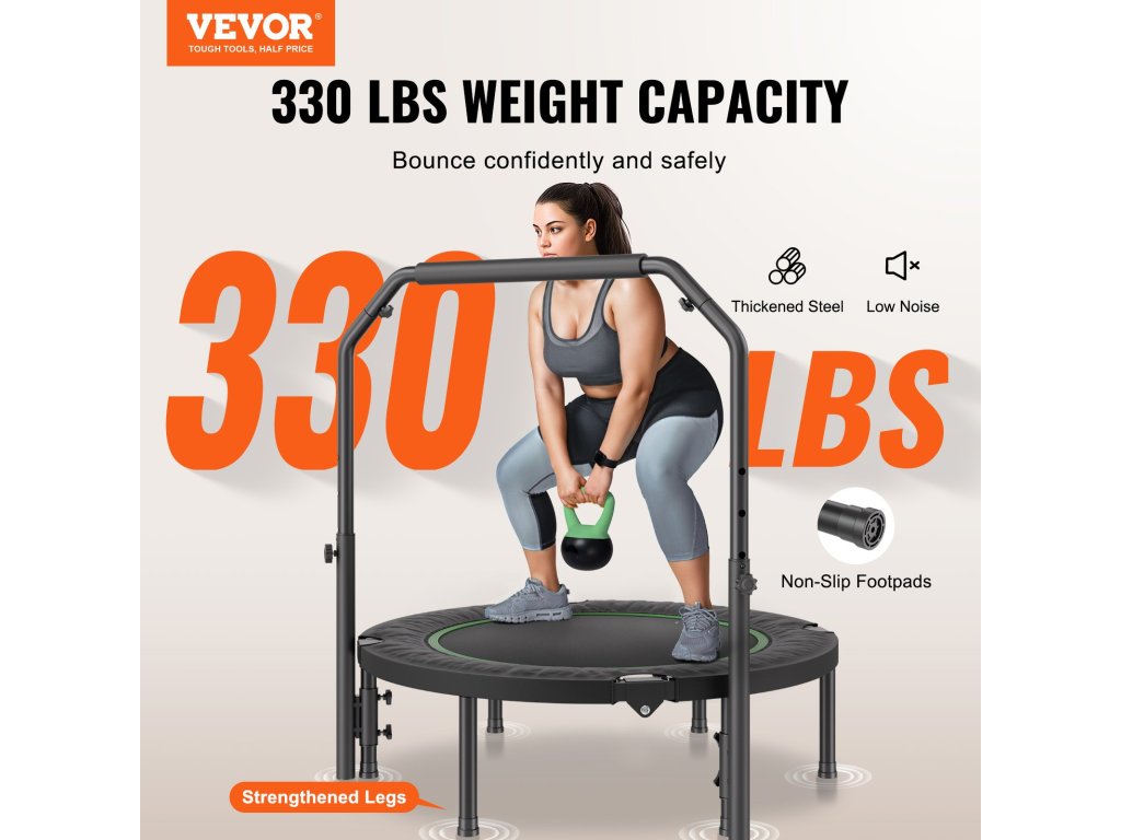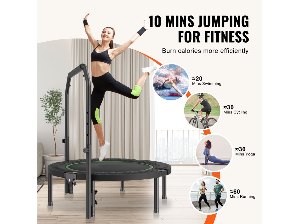 Találja meg az ideális ugrási magasságot a beltéri trambulin fogantyújával, amely 4 különböző szintre állítható 39 és 48,5 hüvelyk között. Állítsa be a magasságot az Ön kényelméhez, és optimalizálja az edzés teljesítményét.