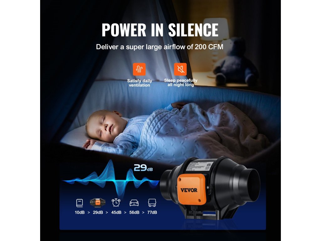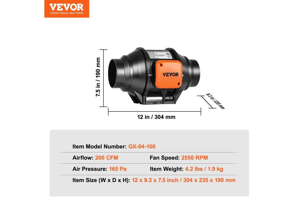 Készen állsz egy kis friss levegőre? Akkor vegyen egy mély lélegzetet és készüljön fel! A VEVOR inline csatornás ventilátor nagy sebességű, tiszta réz motorral van felszerelve, amely nagy mennyiségű levegőt szállít a bőséges szellőzés érdekében. A zaj csökkentése érdekében rezgésmentes gumipárnákkal rendelkezik.