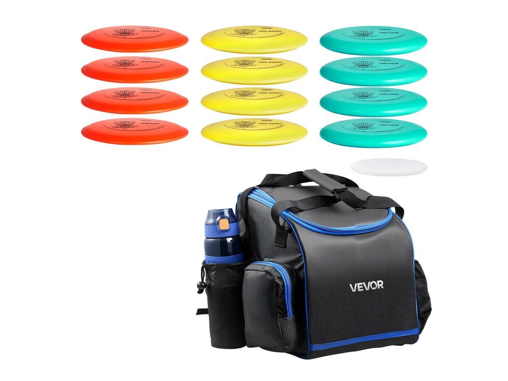 12 darabos disc golf korongkészlet putterrel, középtalppal, driverrel és hátizsákkal