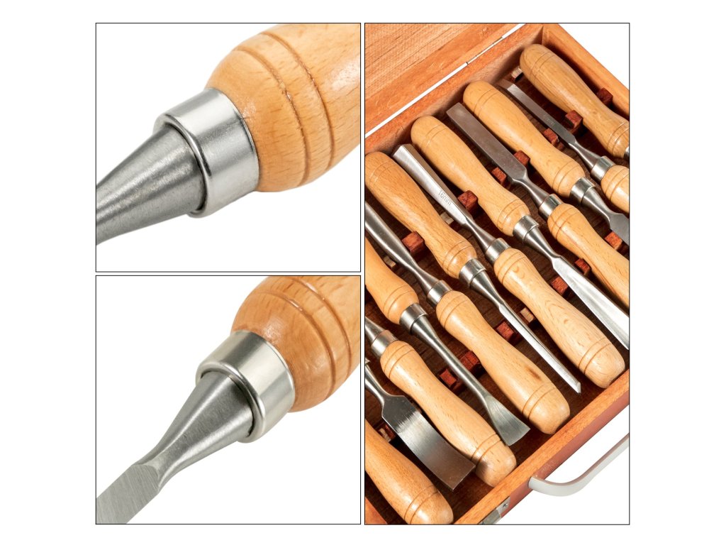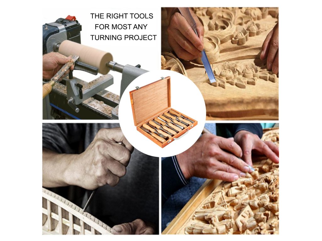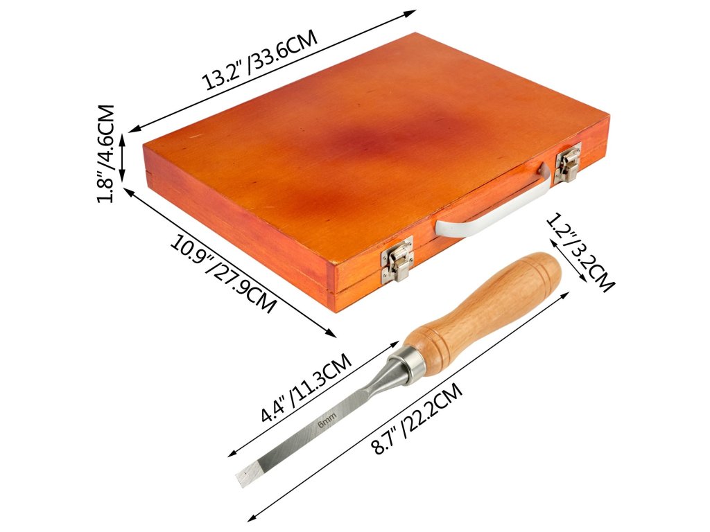 A fa esztergályos szerszámokat famegmunkáláshoz, esztergáláshoz, faragási projektekhez stb. tervezték, könnyen és biztonságosan használhatóak. A fogantyúk kiváló minőségű csiszolt fából készültek a kényelmes fogás érdekében. A pengék pedig HSS-ből készülnek A vésők teljes hossza körülbelül 7-1/2" (190 mm). A kompakt kialakítású, tartós tokkal ellátott fa esztergályos szerszámok könnyen tárolhatók és szállíthatók.