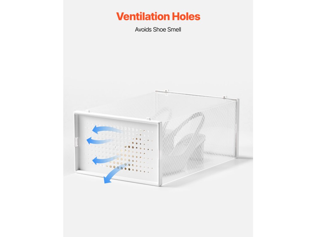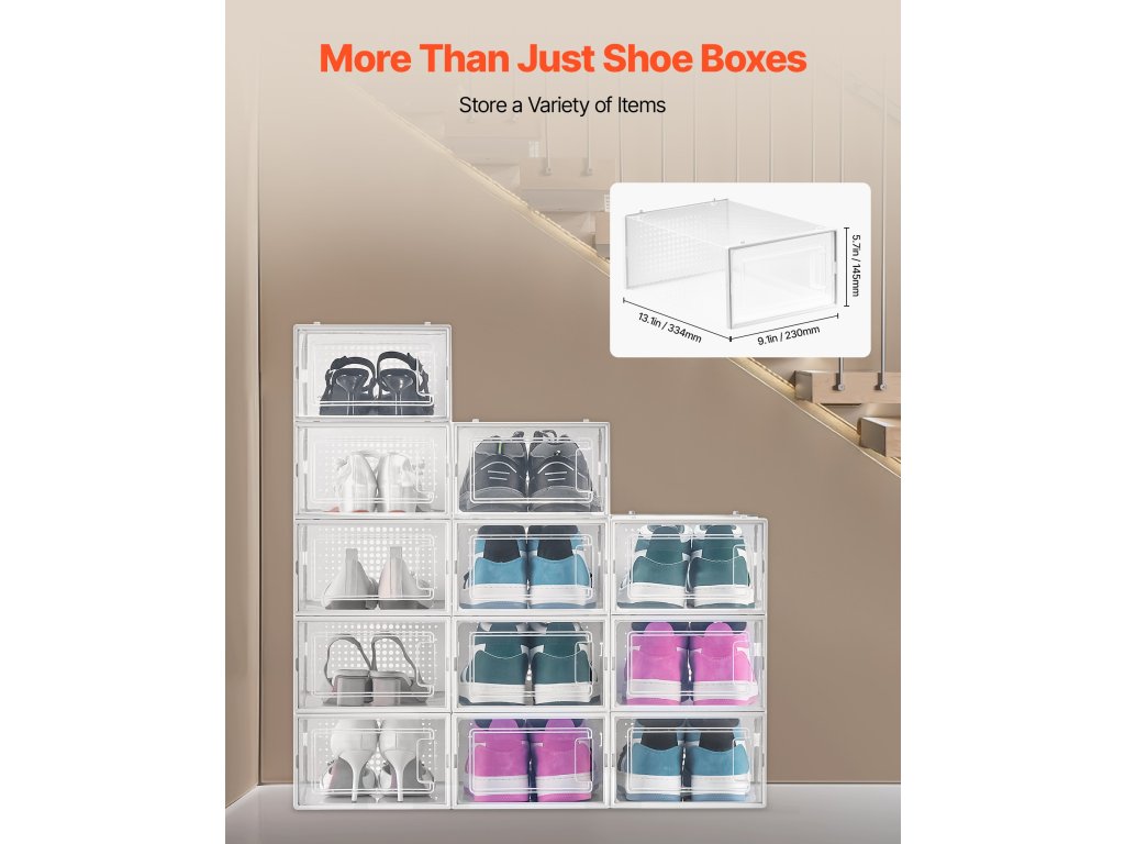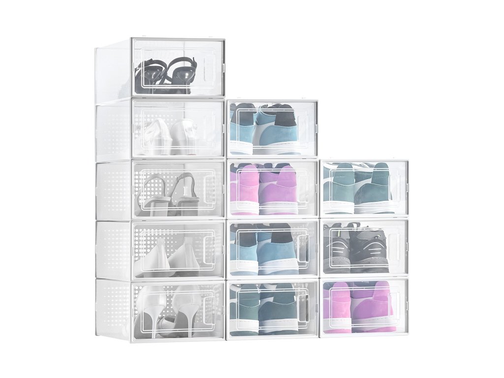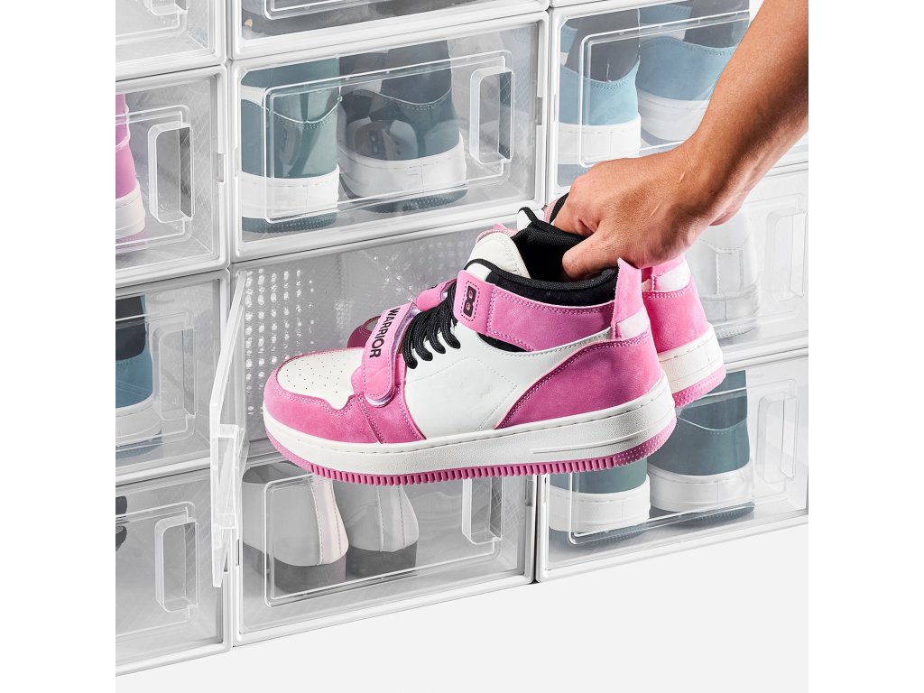 Az átlátszó cipősdobozok több cipőt és kisebb tárgyakat tárolnak, miközben erős teherbírásuknak és csúszásmentes kialakításuknak köszönhetően stabilitást biztosítanak, így biztonságos megoldást nyújtanak cipőinek tárolására.