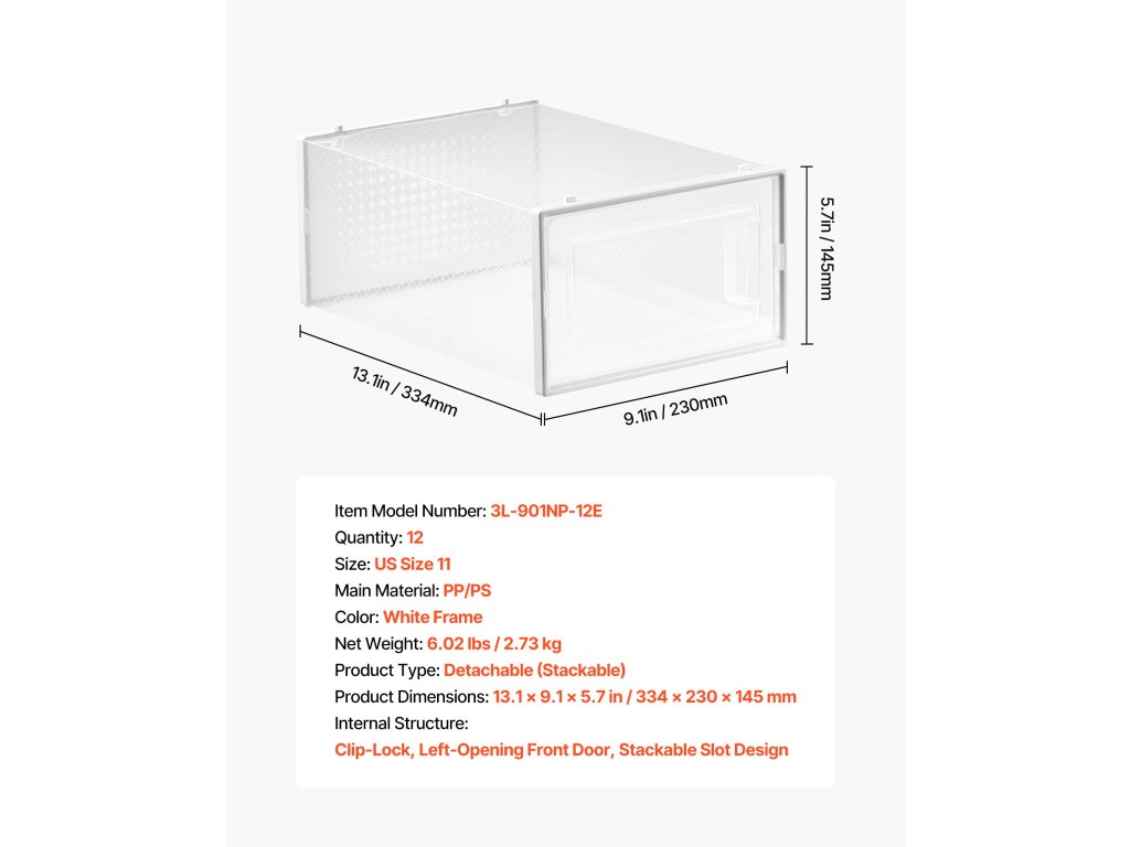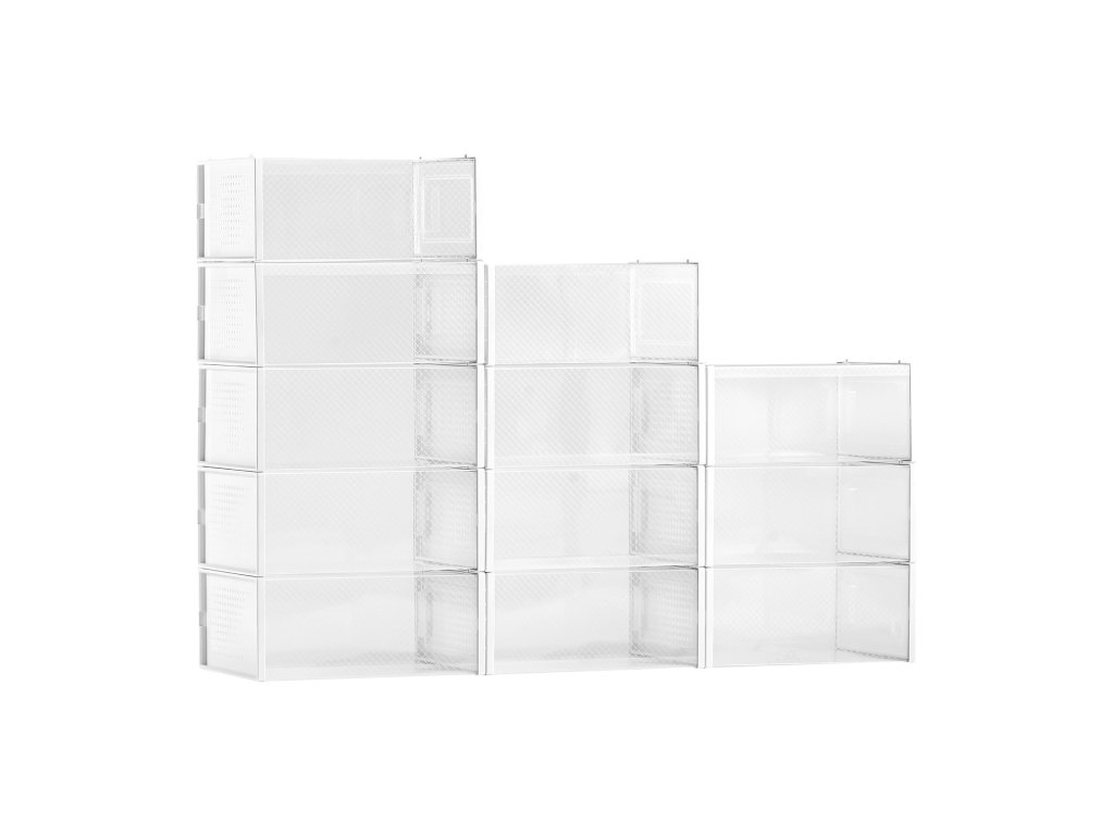 12 db-os egymásra rakható cipősdoboz, US 11 mérethez, fehér kerettel