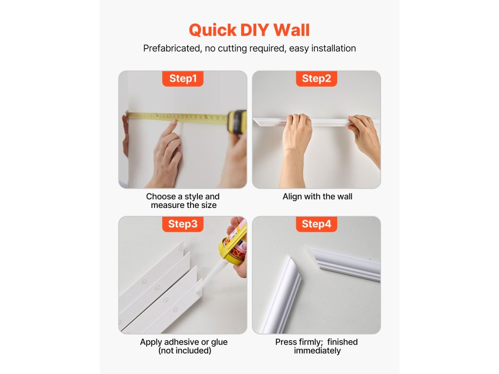 Egy pillanat alatt átalakítja a szobáját. A karcsú vonalak finom kontúrokat hoznak létre, amelyek elegáns megjelenést kölcsönöznek a térnek anélkül, hogy vállalkozót kellene felbérelnie, aggódnia kellene a rendetlenség miatt, vagy heteket töltenie felújítással. Ez a falipárkány-készlet segítségével könnyedén lenyűgöző eredményt érhet el.