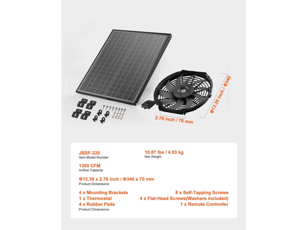 12 hüvelykes, 1300 köbláb/perc napelemes tetőventilátor termosztáttal és ráccsal
