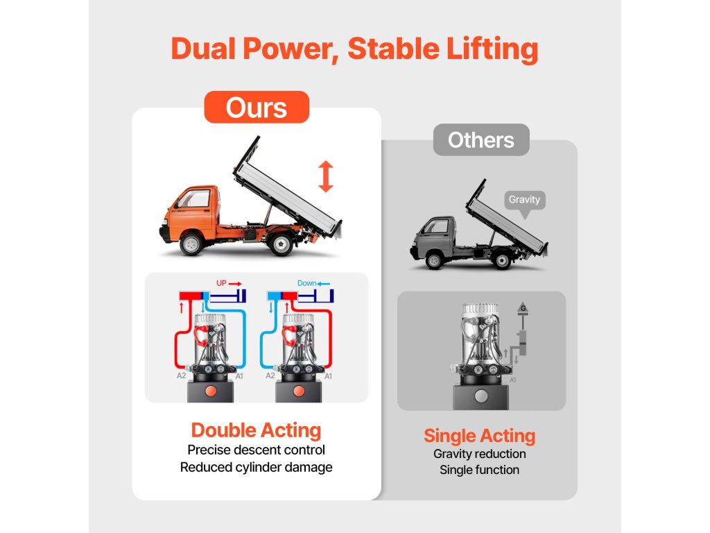 Ez a hidraulikus billenőplatós pótkocsi szivattyú segít a profi szerelőknek és garázsoknak a munka gyors elvégzésében. Támogatja a billenő pótkocsikat, rakodógépeket, ollós emelőket, emelőasztalokat, anyagmozgató berendezéseket és sok más kompatibilis emelőplatformot a sokoldalú műhelyhasználat érdekében.