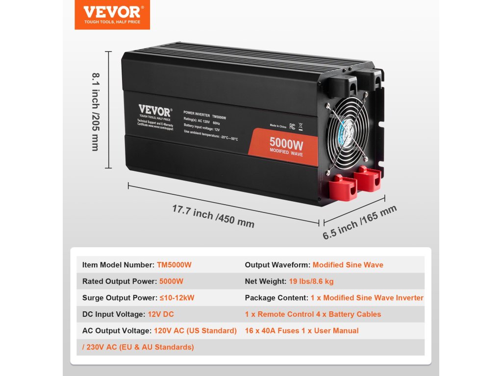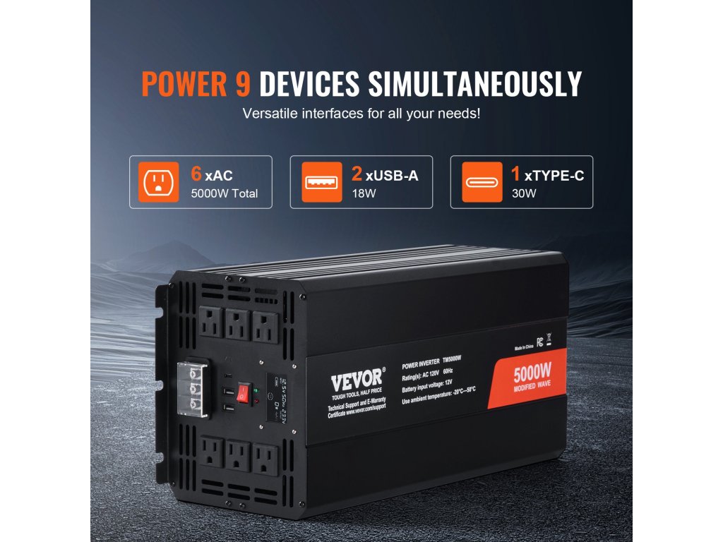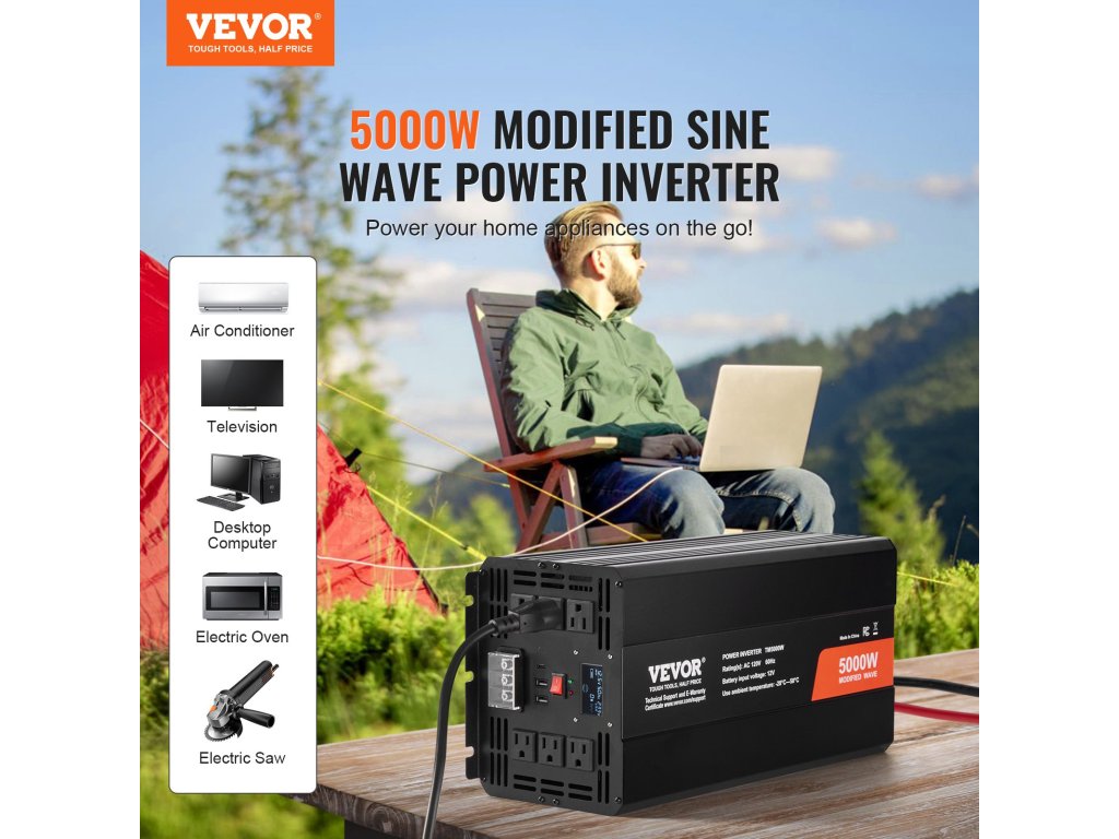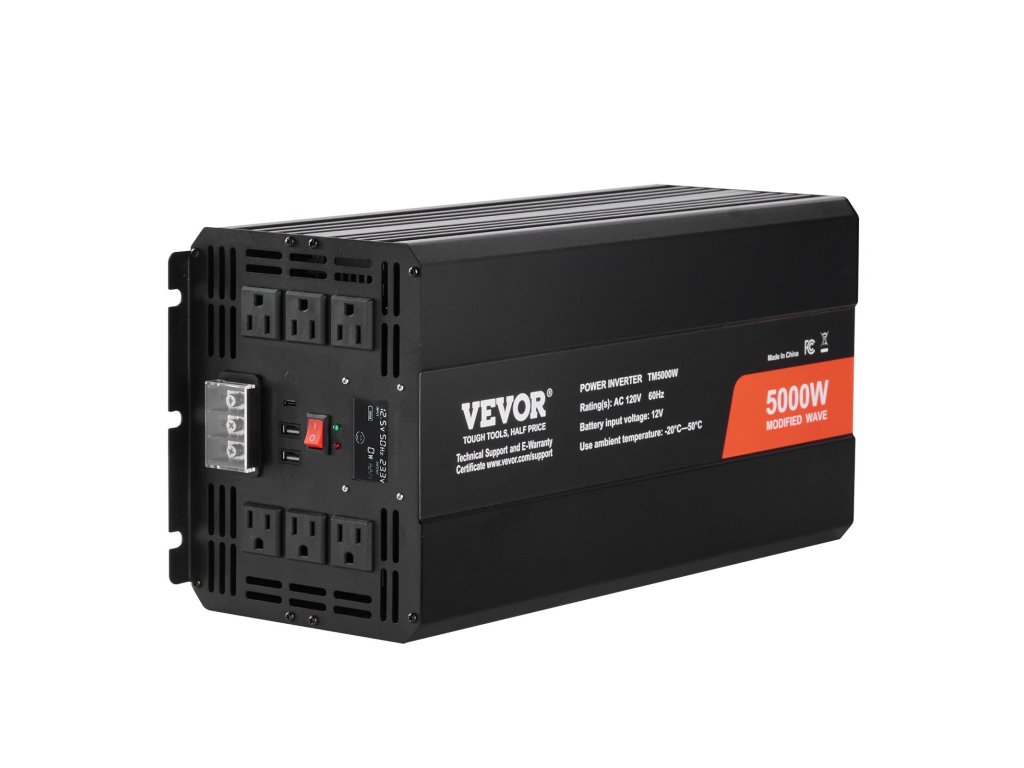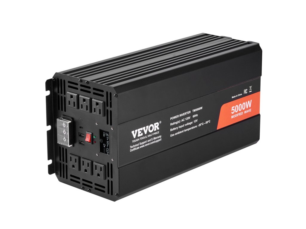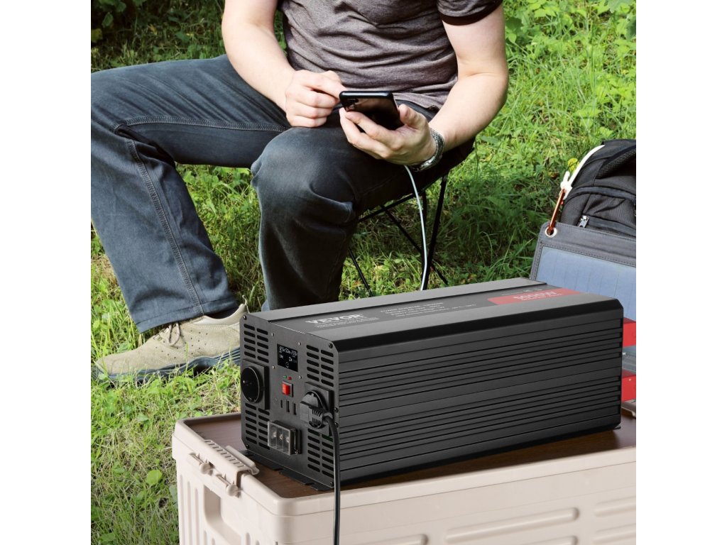 12 V DC-ről 230 V AC-re átalakító inverter, 5000 W, 2 × 230 V AC, 2 × USB, USB-C, LCD
