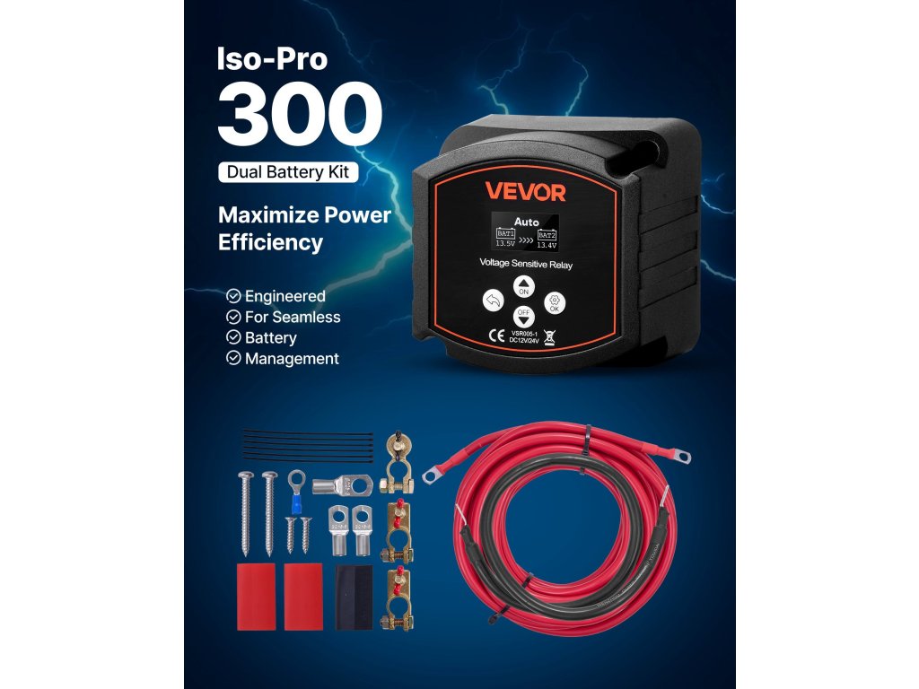 Ez a kifejezetten kettős akkumulátoros rendszerekhez tervezett 12V-os osztott töltésleválasztó készlet biztosítja a két akkumulátor egyidejű töltését a készülék áramellátásának megszakítása nélkül. Akár terepjárójában, lakóautójában vagy hajójában, stabil és megbízható áramellátást biztosít a berendezéseinek.