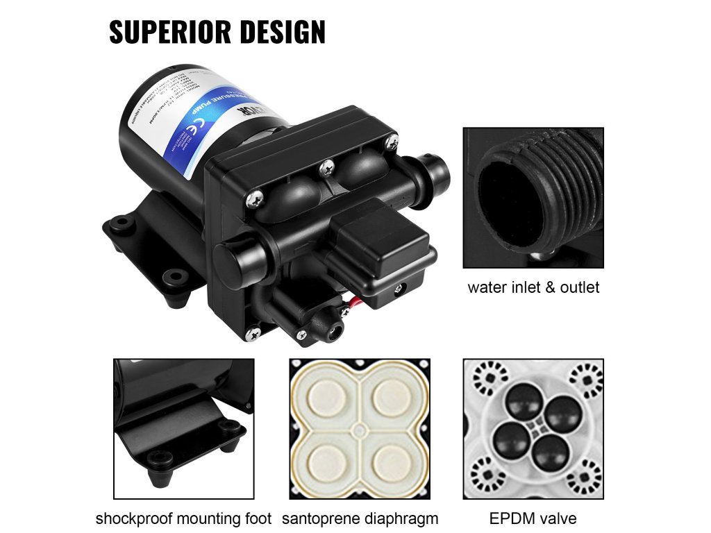 A vízszivattyút széles körben használják víz szivattyúzására, és ideális autóipari csónakázáshoz / lakóautókhoz / lakókocsikhoz, mezőgazdasági permetezéshez, általános iparhoz, locsolószerelvényekhez stb.