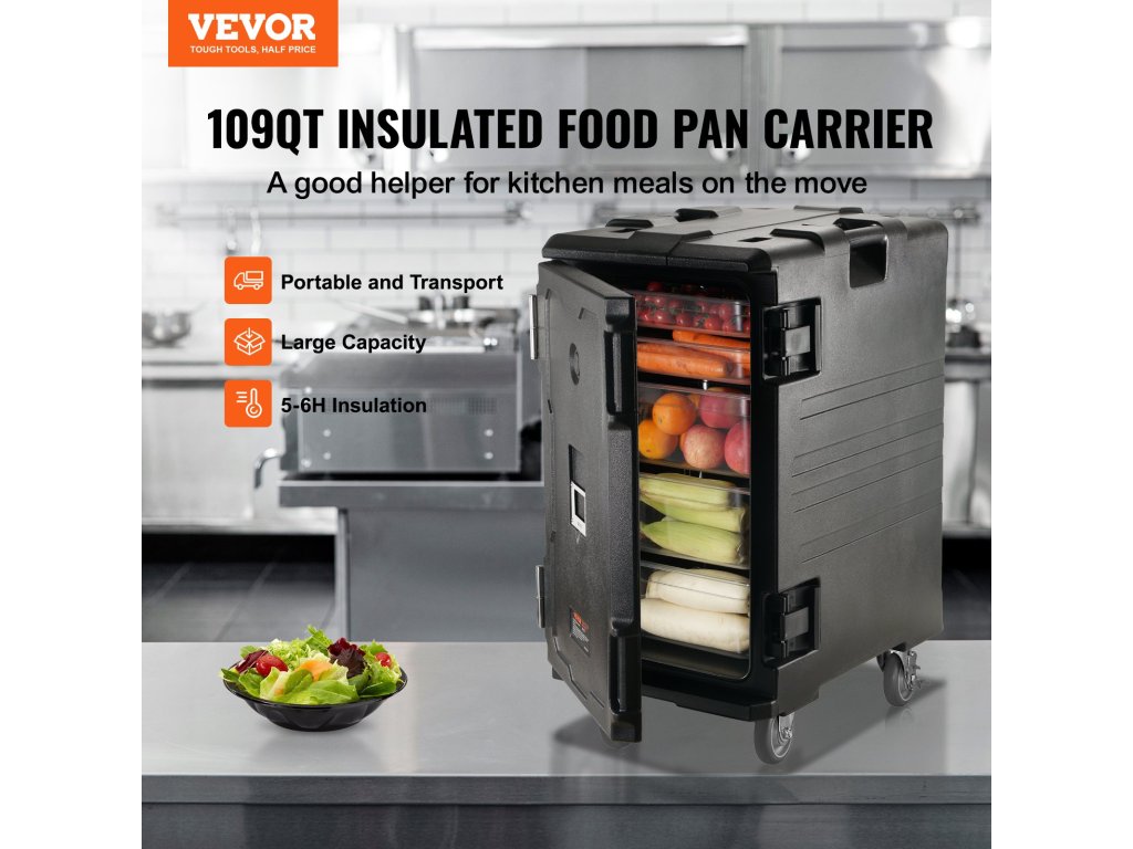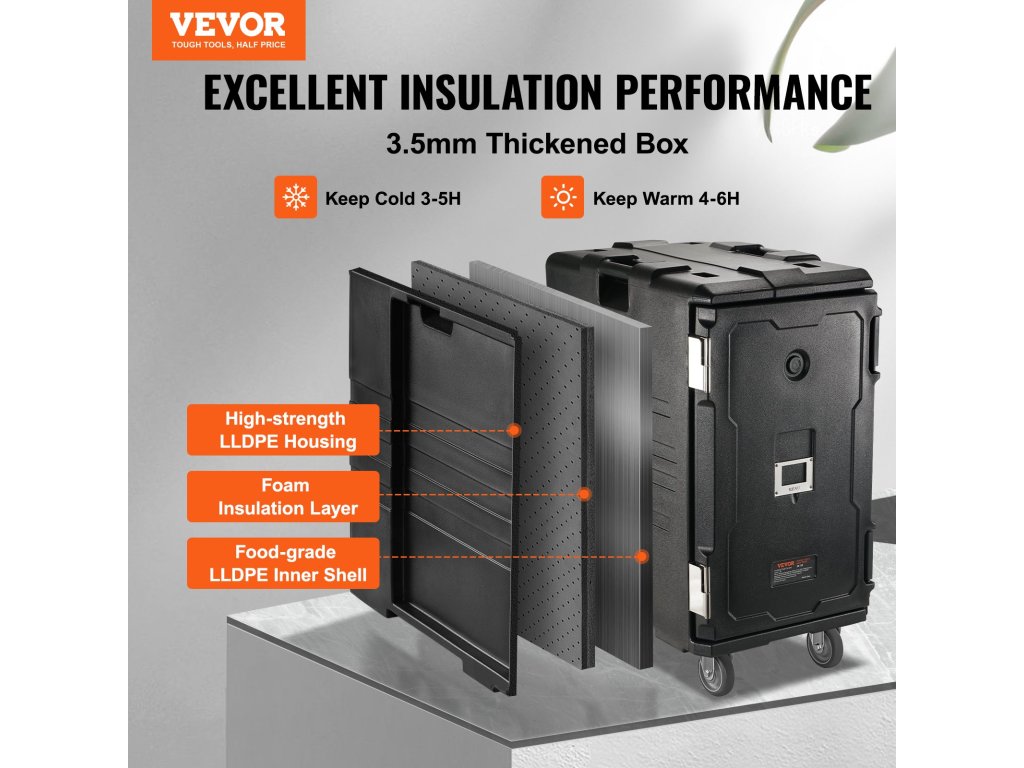 Ez az ételhordozó egy 1,2 "/ 3 cm vastag testből és egy beágyazott tömítőgyűrűvel ellátott megerősített ajtóból áll, és kiváló hőmérséklet-tartással rendelkezik, hogy az ételek biztonságban és tálalásra készen maradjanak. Az ételt 4-6 órán keresztül tartja melegen, illetve 3-5 órán keresztül hidegen.