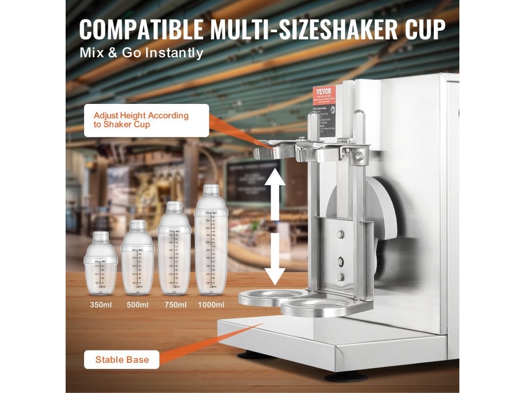 A karbantartás és a tisztítás gyakran nagy kihívást jelent egy italbolt napi működésében, a tej-tea rázógépünk rozsdamentes acélból készült, könnyen tisztítható, tartós és csúszásmentes lábakkal van ellátva, hogy a munka stabil legyen és ne mozduljon el.