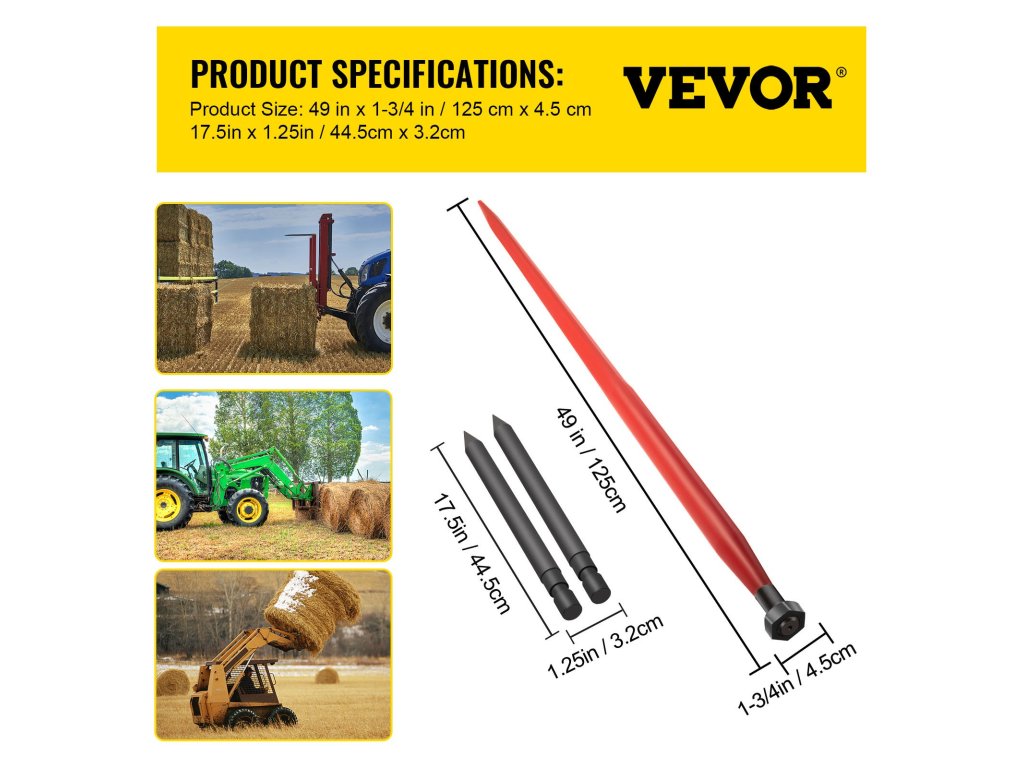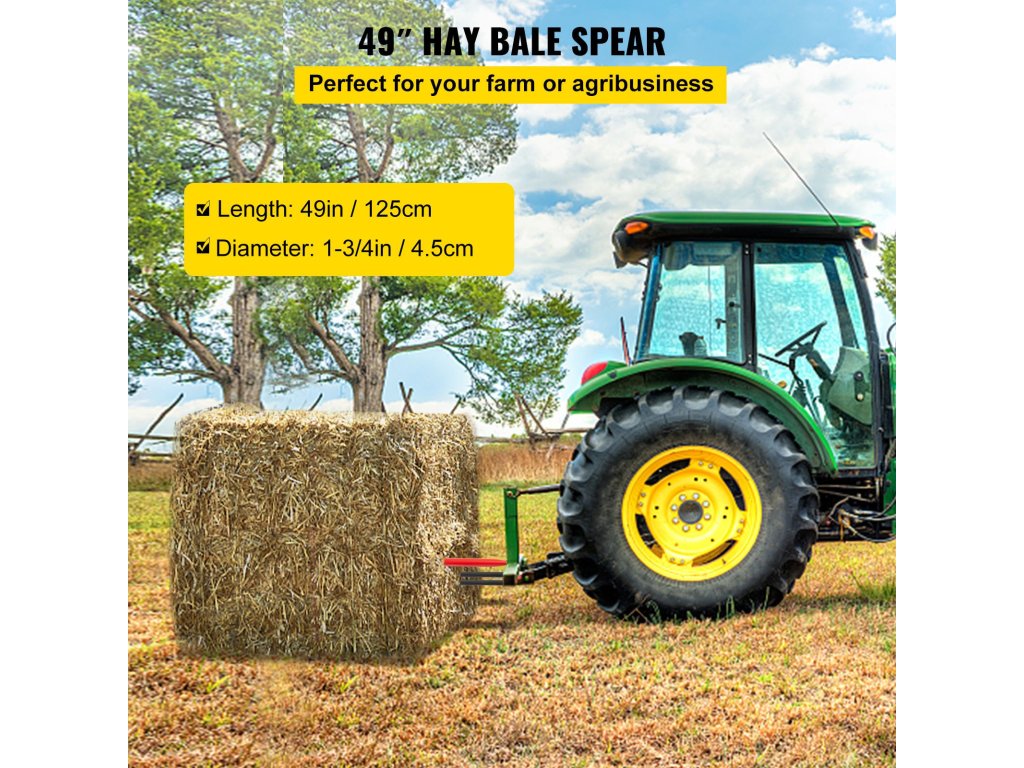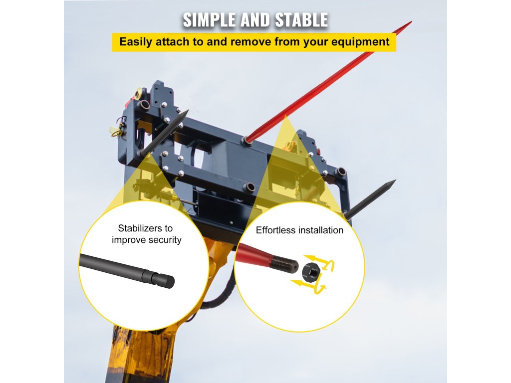 A bálalándzsáink 49 hüvelyk hosszúak. Négyszögletes szárral és kúpos, éles csúccsal tervezték a maximális szilárdság érdekében. Bármilyen méretű szénabálákat képes mozgatni. A 17,5 hüvelykes átmérőjű stabilizátorok pedig további stabilitást biztosítanak.