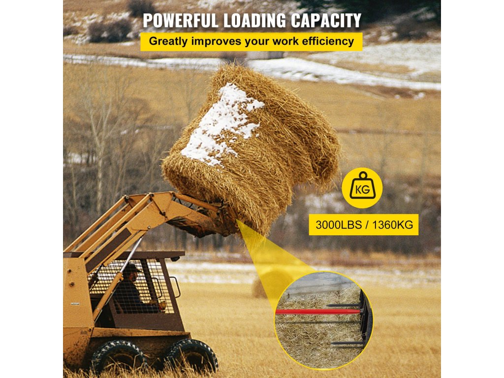 Más lándzsáktól eltérően a mi megerősített széna lándzsánk nem hajlik meg könnyen, és nagy, 3000 font teherbírású. Ez nagymértékben javítja a munka hatékonyságát.