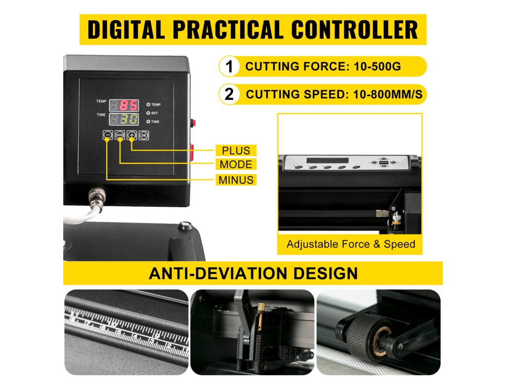 Ez a teljes készlet két professzionális berendezésből áll, nevezetesen egy vinilvágóból és egy hőprésből. a 34"-os vágó plotter lehetővé teszi, hogy egyedi mintákat és tárgyakat faragjon tetszése szerint. A 15"-os hőprés tökéletesen alkalmas a személyre szabott képek pólókra, táskákra, kirakósokra stb. történő átvitelére.