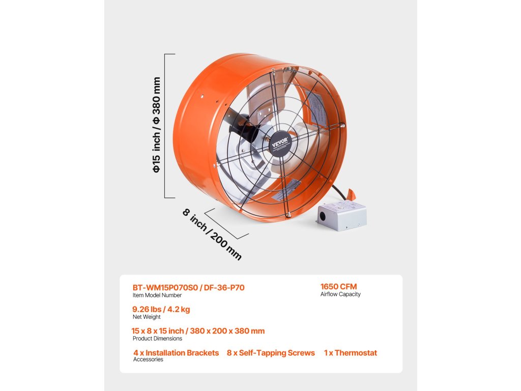 15 hüvelykes oromzatos ventilátor, 1650 CFM, állítható termosztáttal