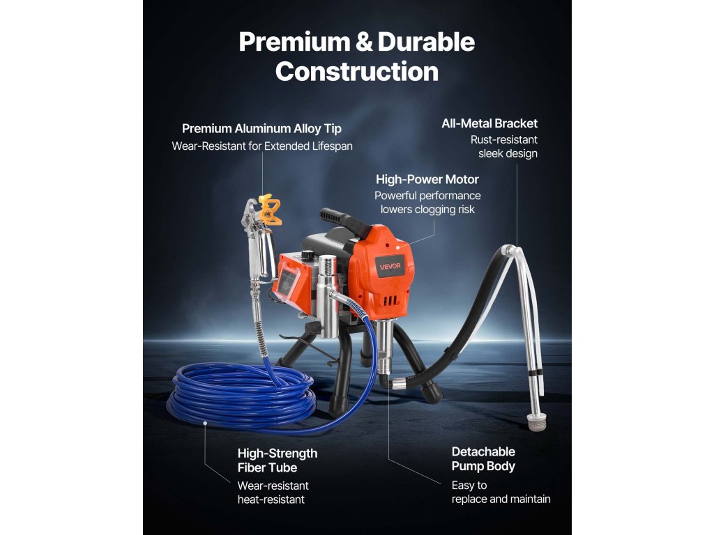 1500 W-os, 3300 PSI nyomású levegő nélküli szórópisztoly, tömlő, fúvókák