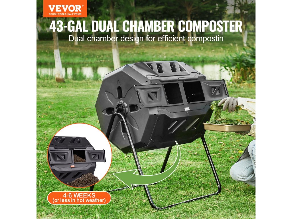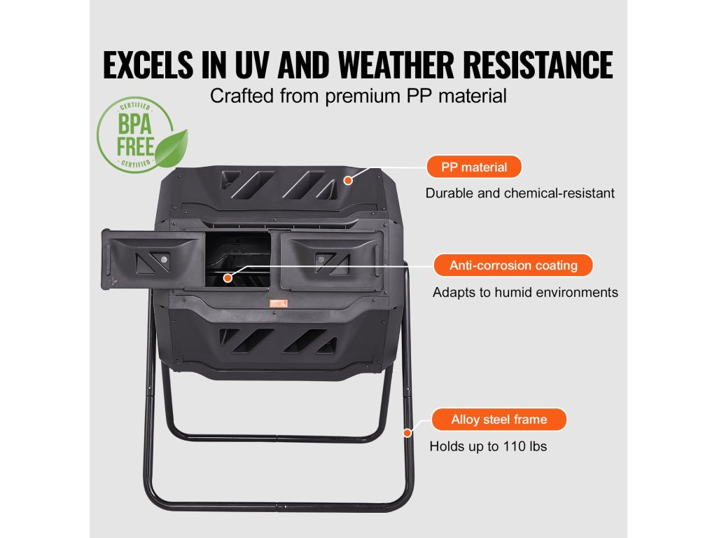 162,8 literes, kétkamrás, forgó komposztáló, 2 tolóajtóval, BPA-mentes