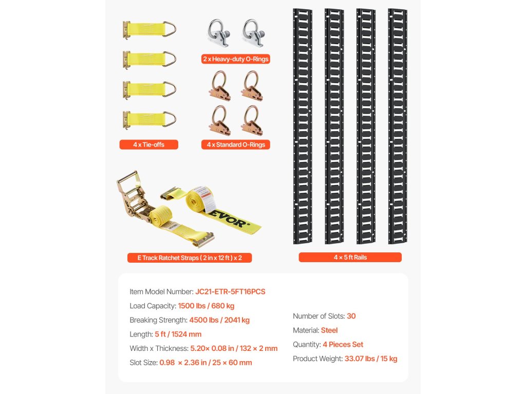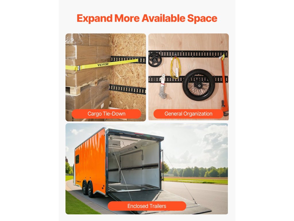 Ha kiváló E-track rögzítő készletet keres, vagy nagy terhet szeretne rögzíteni láncok, racsnis hevederek vagy csatos hevederek segítségével, akkor nálunk van, amire szüksége van. A VEVOR mindig megbízható üzleti partnere lesz professzionális szállítmányozási termékeinknek és kiváló szolgáltatásainknak köszönhetően. A VEVOR elkötelezett itt, hogy prémium e-track tartozékokat, köztük e-track síneket, O-gyűrűs horgonyokat és racsnis hevedereket biztosítson Önnek, amelyekkel a rakomány rögzítése és szállítása gyerekjáték lesz!