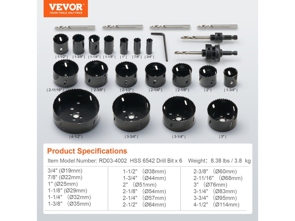 VEVOR lyukfűrészelő készlet
