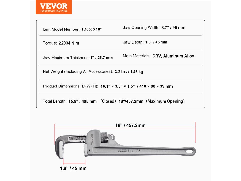 Végezze el a nehéz munkákat a VEVOR 18" egyenes csőkulccsal!