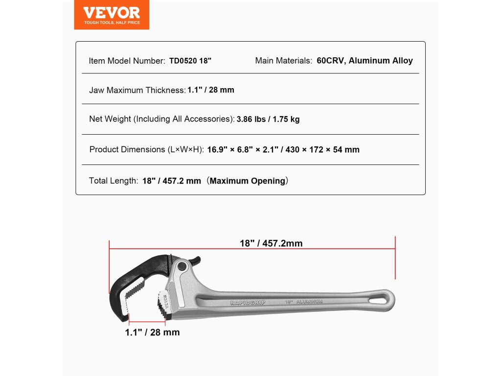 Végezze el a nehéz munkákat a VEVOR 18" egyenes csőkulccsal!