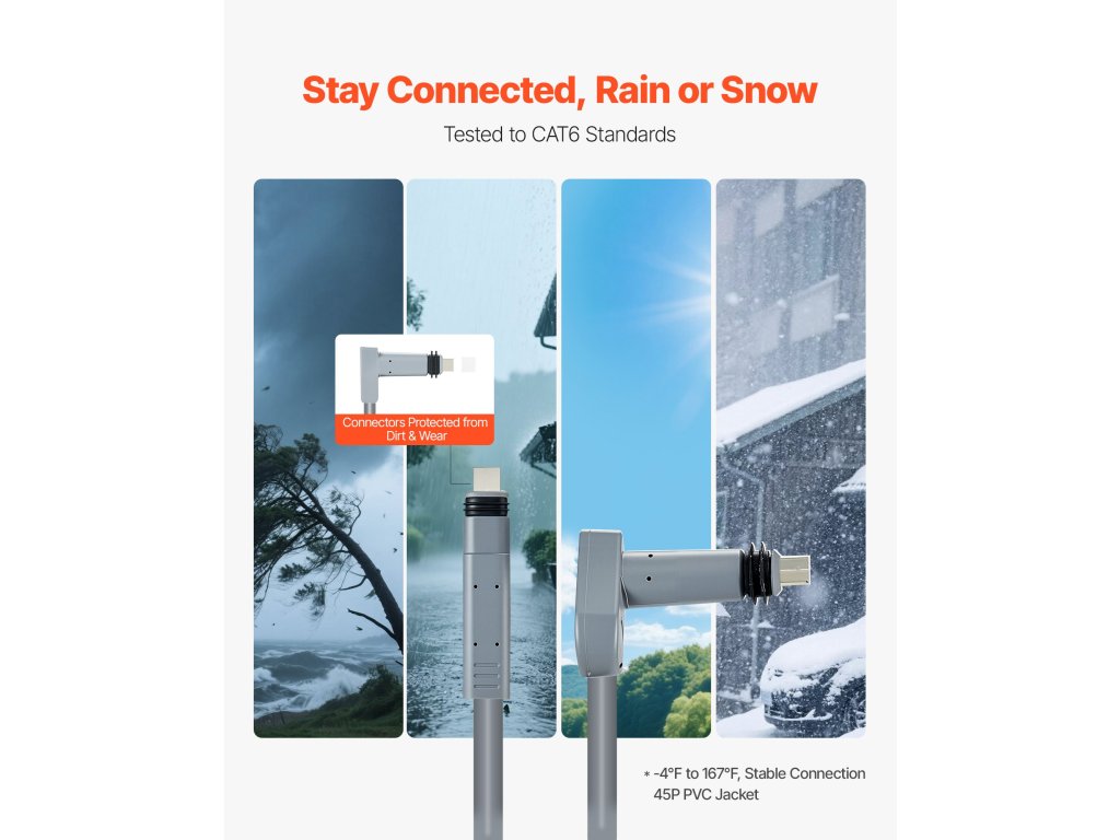 A Starlink Gen2 kábelünk nagy sűrűségű PVC köpennyel és nagy vezetőképességű rézmaggal rendelkezik, amelyet úgy terveztek, hogy ellenálljon a -4℉ és 167℉ közötti szélsőséges hőmérsékleteknek. Ellenáll a hőnek, a hidegnek, a szélnek és a hónak, így biztosítva a hálózat zavartalan működését. Az Ön megbízható választása a kültéri Starlink hálózat telepítésekhez.