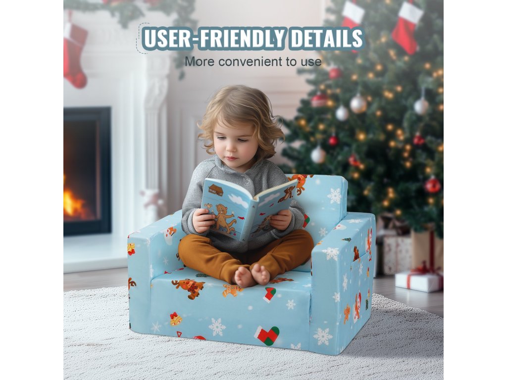 Az összecsukható kialakítás növeli a használhatóságot. Összehajtogatva a gyermekszék önálló székként szolgál olvasáshoz vagy pihenéshez; kibontva alvószékké vagy játszószőnyeggé alakul - egy szék több funkcióval.