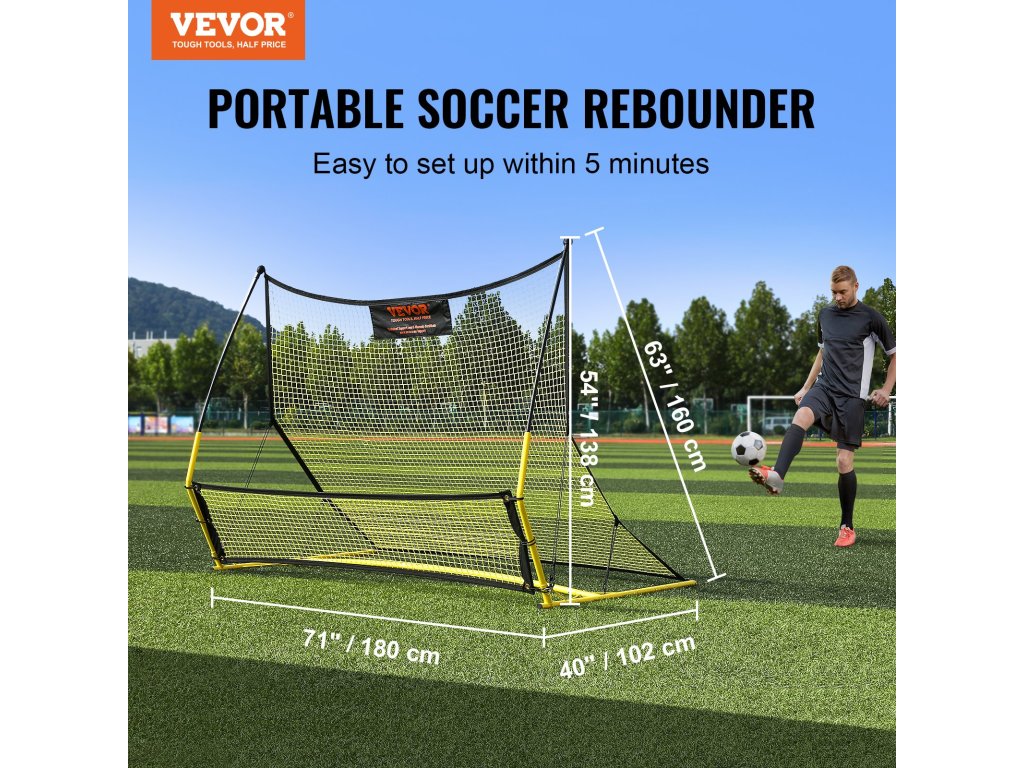 2 az 1-ben hordozható foci lepattanóháló 182,9 × 129,5 cm fém táskával