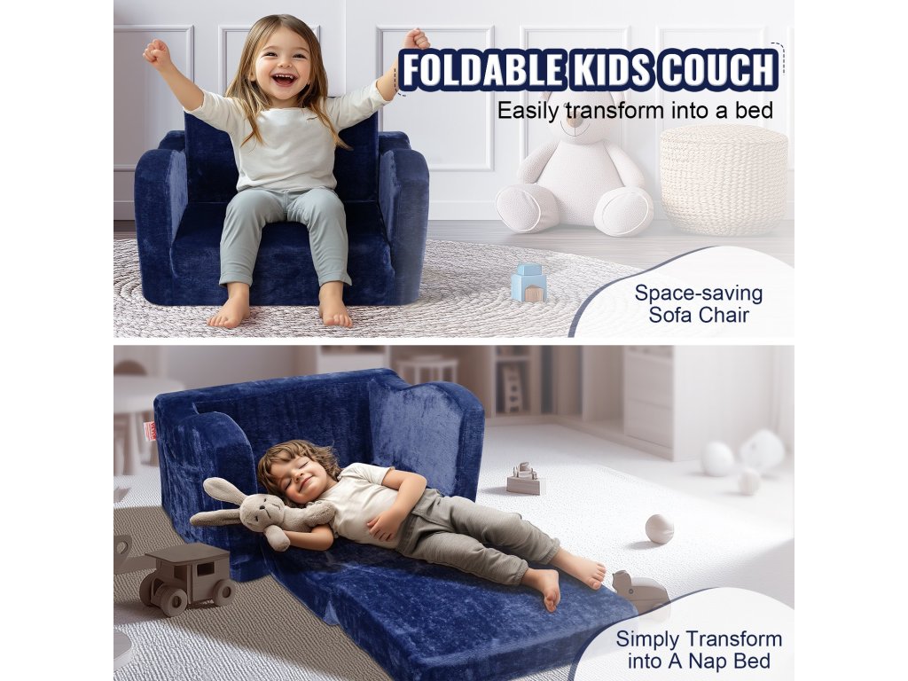 2 az 1-ben kisgyermek kanapéágy, kék, alváshoz