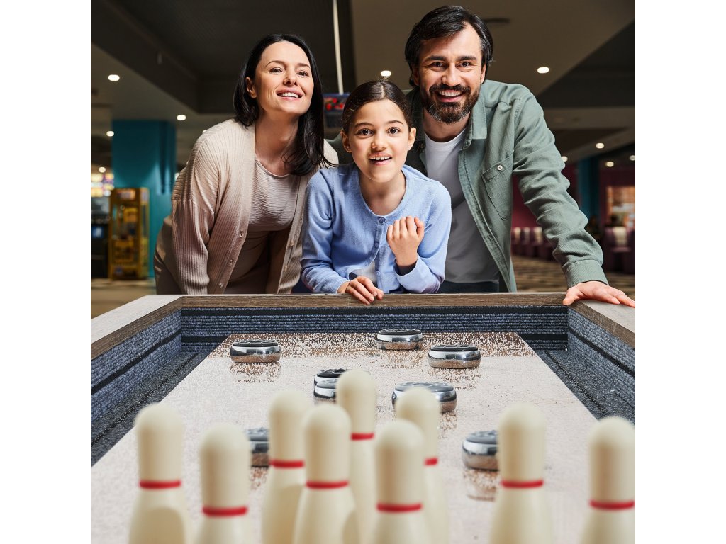 Maximalizálja a szórakozást a 2 az 1-ben shuffleboard játékunkkal, amely két játékot egyesít egyben. Játsszon a klasszikus shuffleboard játékkal, vagy váltson a bowling lebilincselő játékára.