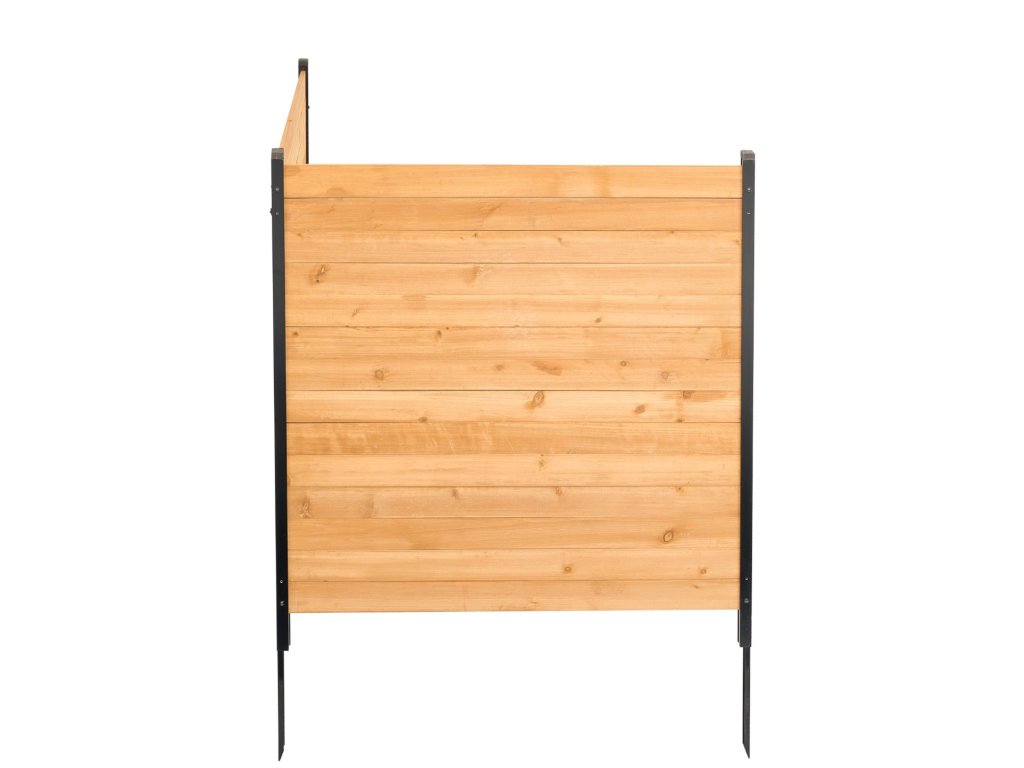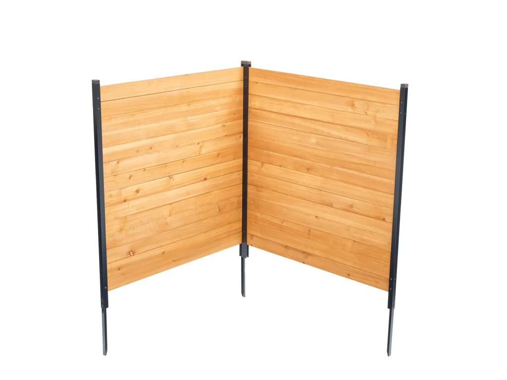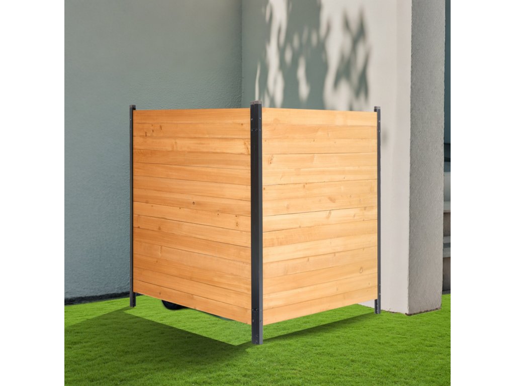 A természetes fapanelekből és erős fém cölöpökből készült légkondicionáló kerítés stabil, hőálló, és úgy tervezték, hogy hosszú távú kültéri használatot bírjon ki repedés vagy vetemedés nélkül.