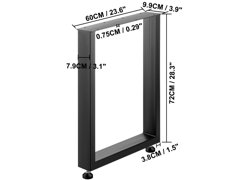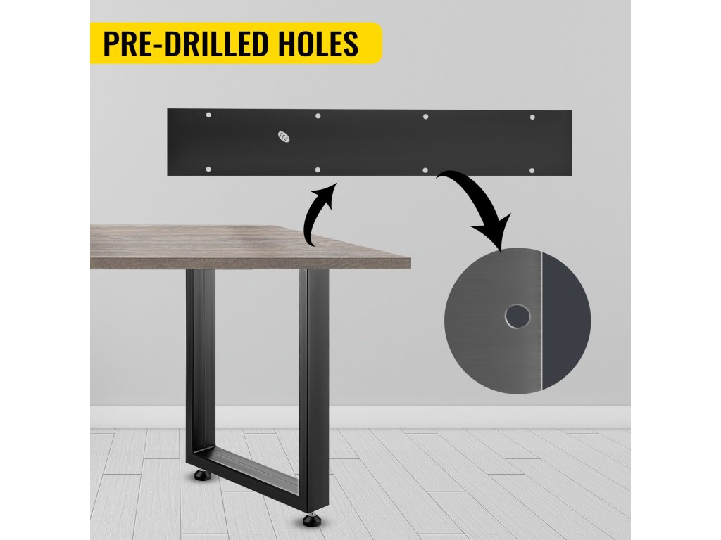 Az 1000 kg/2204 font maximális teherbírású erős lábak elég erősek a nehéz tárgyak megtartásához. Az erős acélcsövek olyan tulajdonságokat kínálnak ezeknek az asztallábaknak, mint a nagy szilárdság, törésmentesség.
