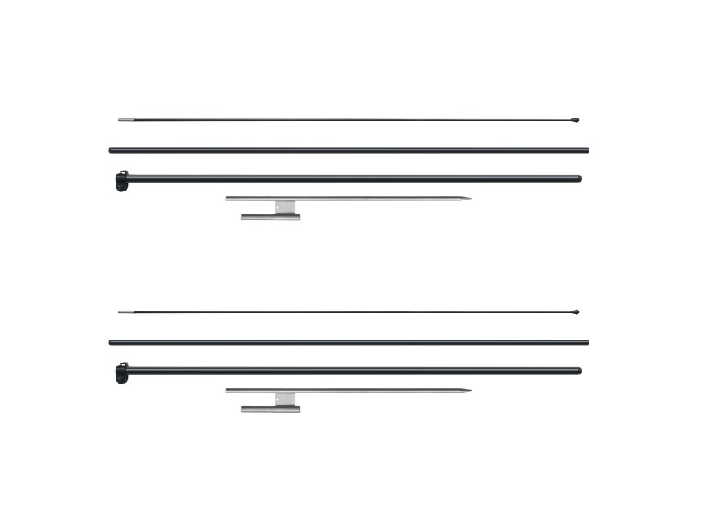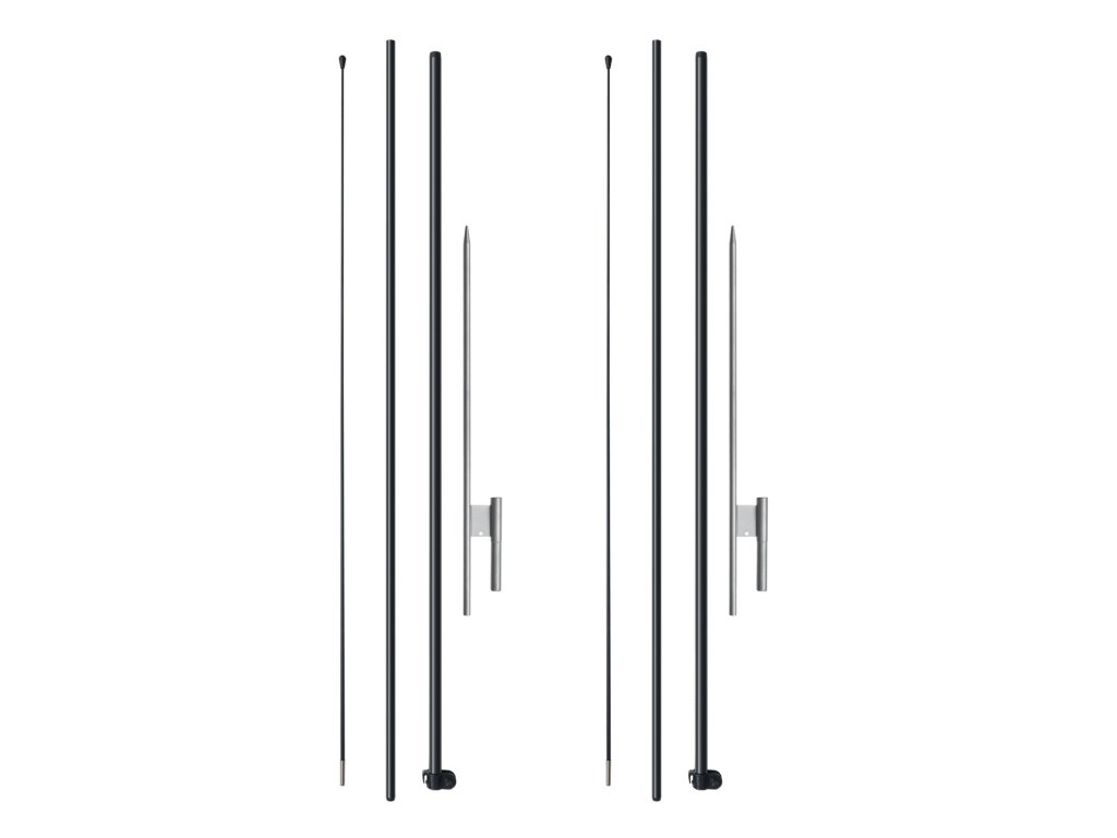 2 db 3,7 méter magas zászlórúd készlet, cövekekkel és táskával