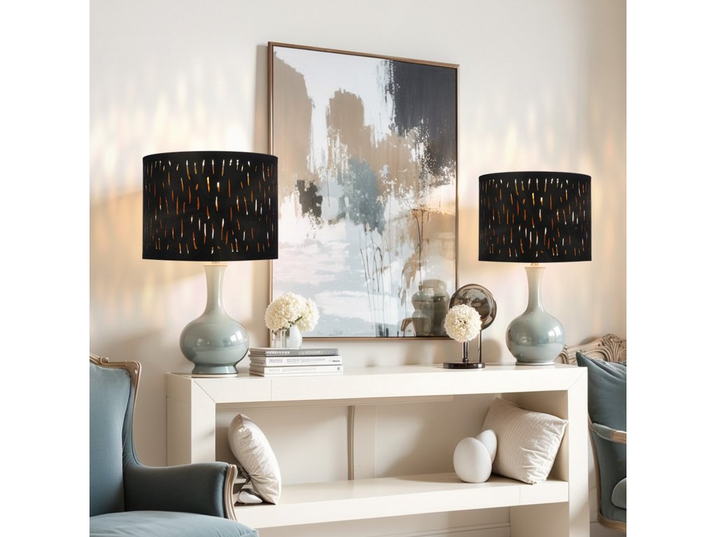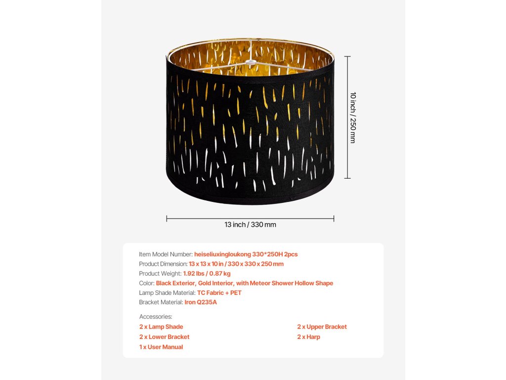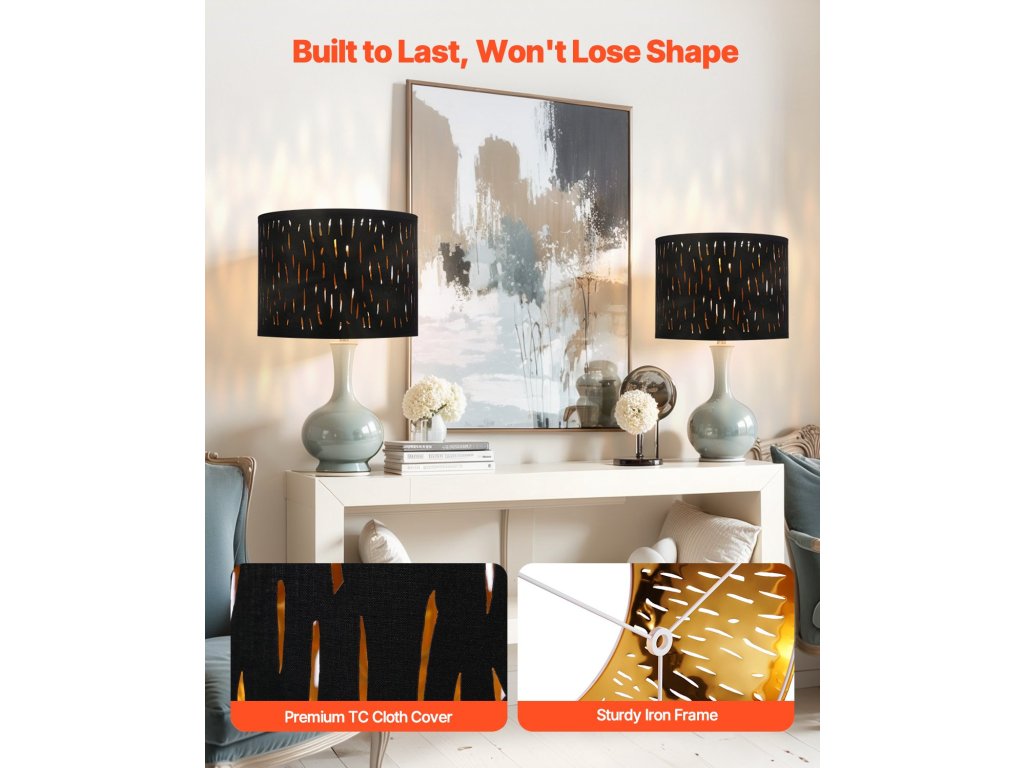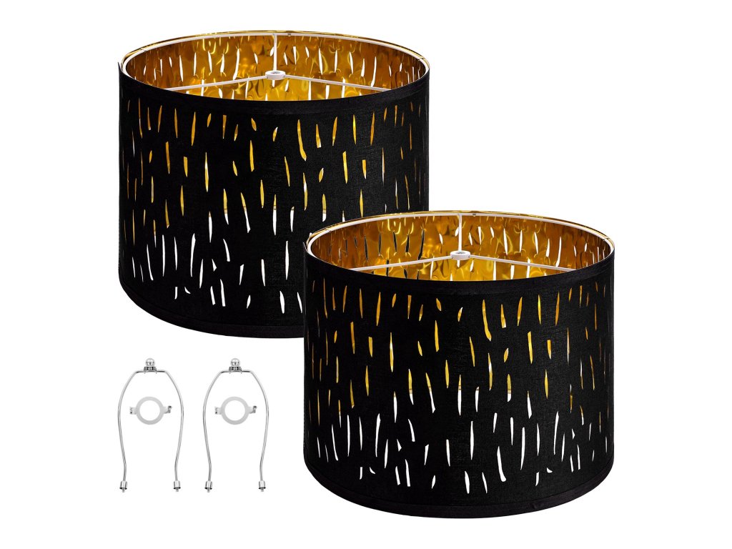 2 db hengeres lámpaernyő szett, 33 cm × 33 cm × 25 cm, fekete színben, konzollal
