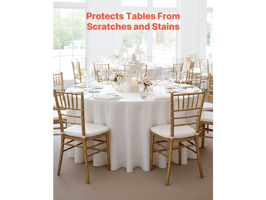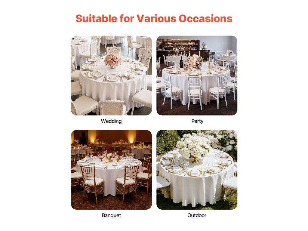 A prémium poliészter anyagból készült elegáns terítő kiemeli asztala általános megjelenését. Tökéletes esküvőkre, ballagásokra, születésnapokra és más különleges alkalmakra, és egy csipetnyi előkelőséget és stílust kölcsönöz az eseménynek.