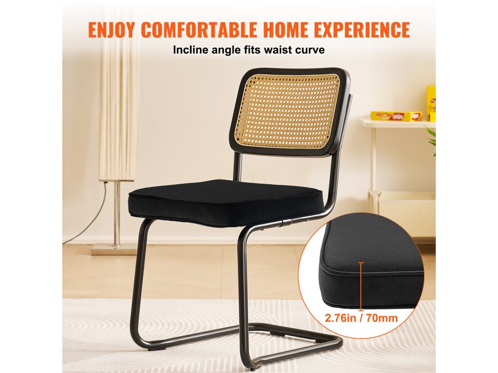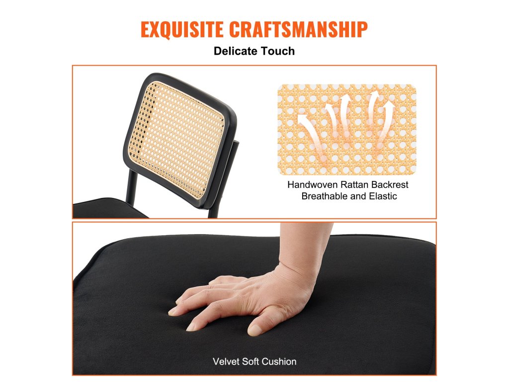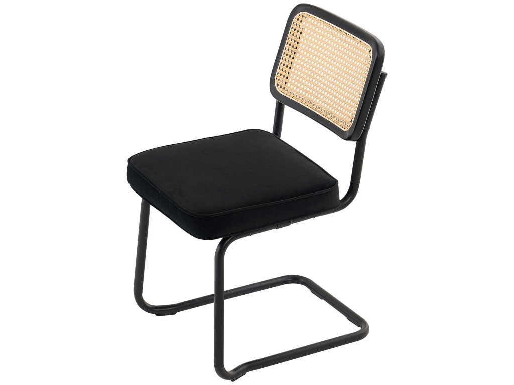 2 db-os bársony kárpitozott rattan étkezőszék szett, fekete