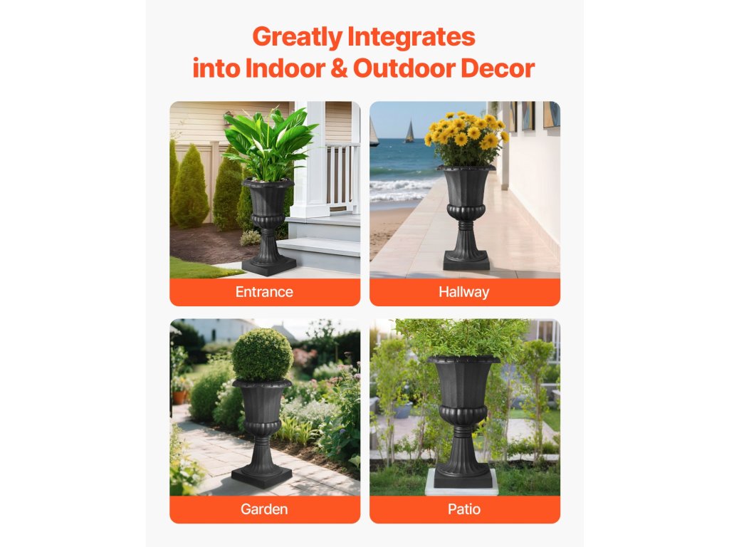 A 15,8 x 26,4 hüvelykes műanyag urna tökéletesen alkalmas különböző növények számára. Tartós PP anyagból készült, könnyű, és intelligens vízelvezető rendszerrel rendelkezik, ideális beltéri vagy kültéri használatra, hogy a természet egy csipetnyi hangulatát adja a térnek.